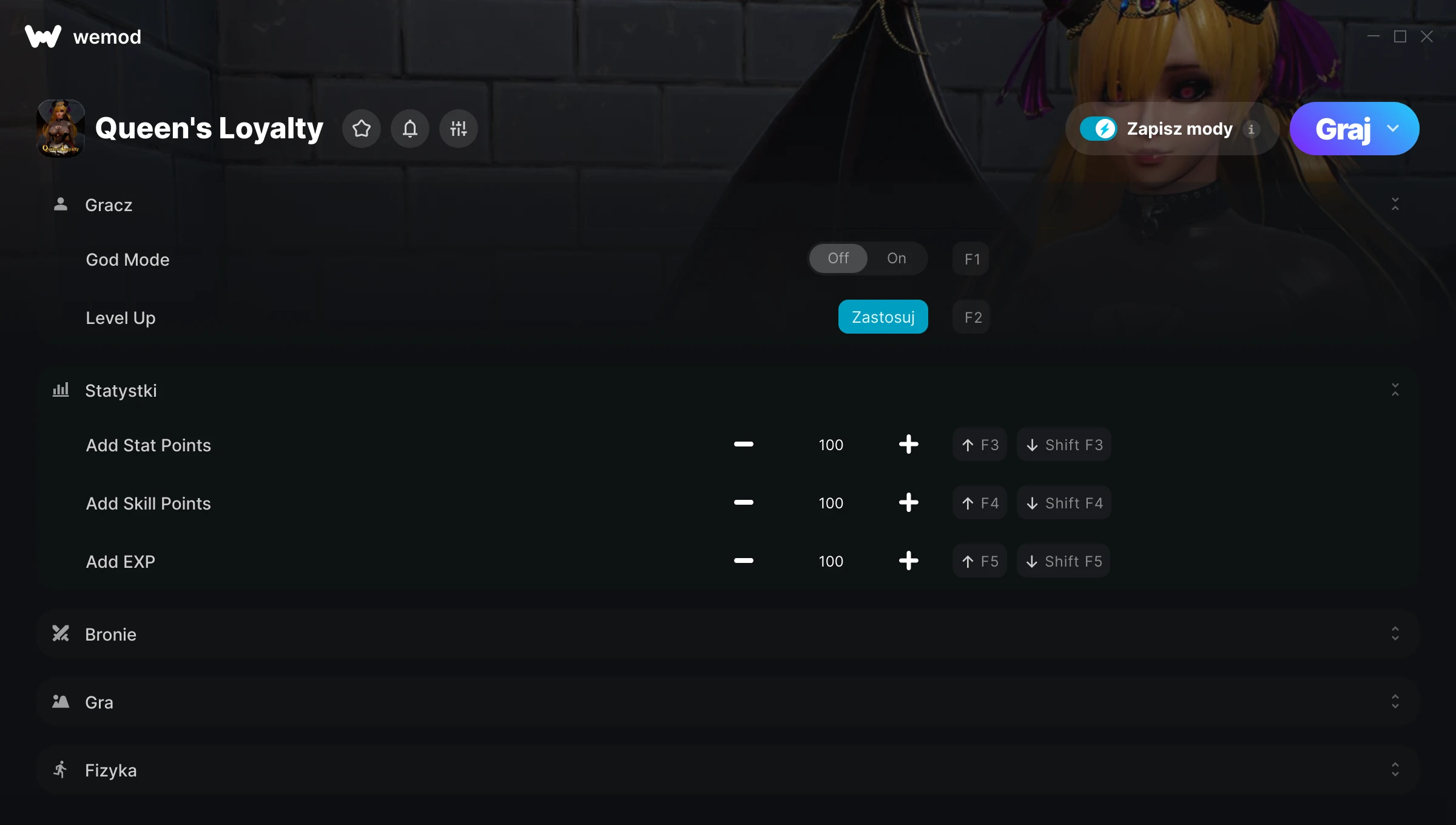 85MB Windows ...lub odwiedź nas na swoim komputerze, aby pobrać aplikację Pobierz Tryb Boga, Zdobywanie poziomów & 7 inny mod for Queen's Loyalty with WeMod
