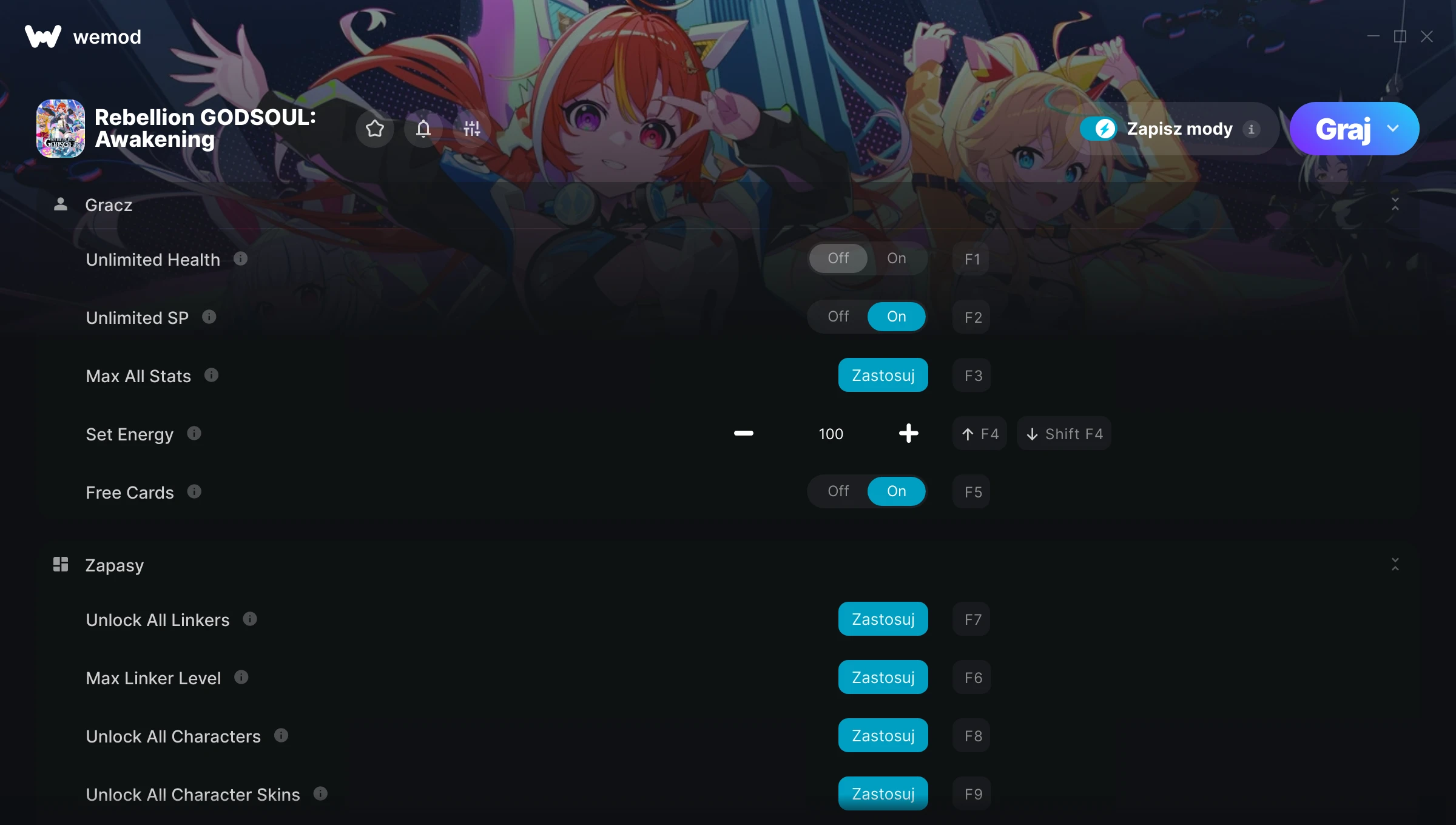 85MB Windows ...lub odwiedź nas na swoim komputerze, aby pobrać aplikację Pobierz Nieograniczone zdrowie, Nieograniczony SP & 19 inny mod for Rebellion GODSOUL: Awakening with WeMod