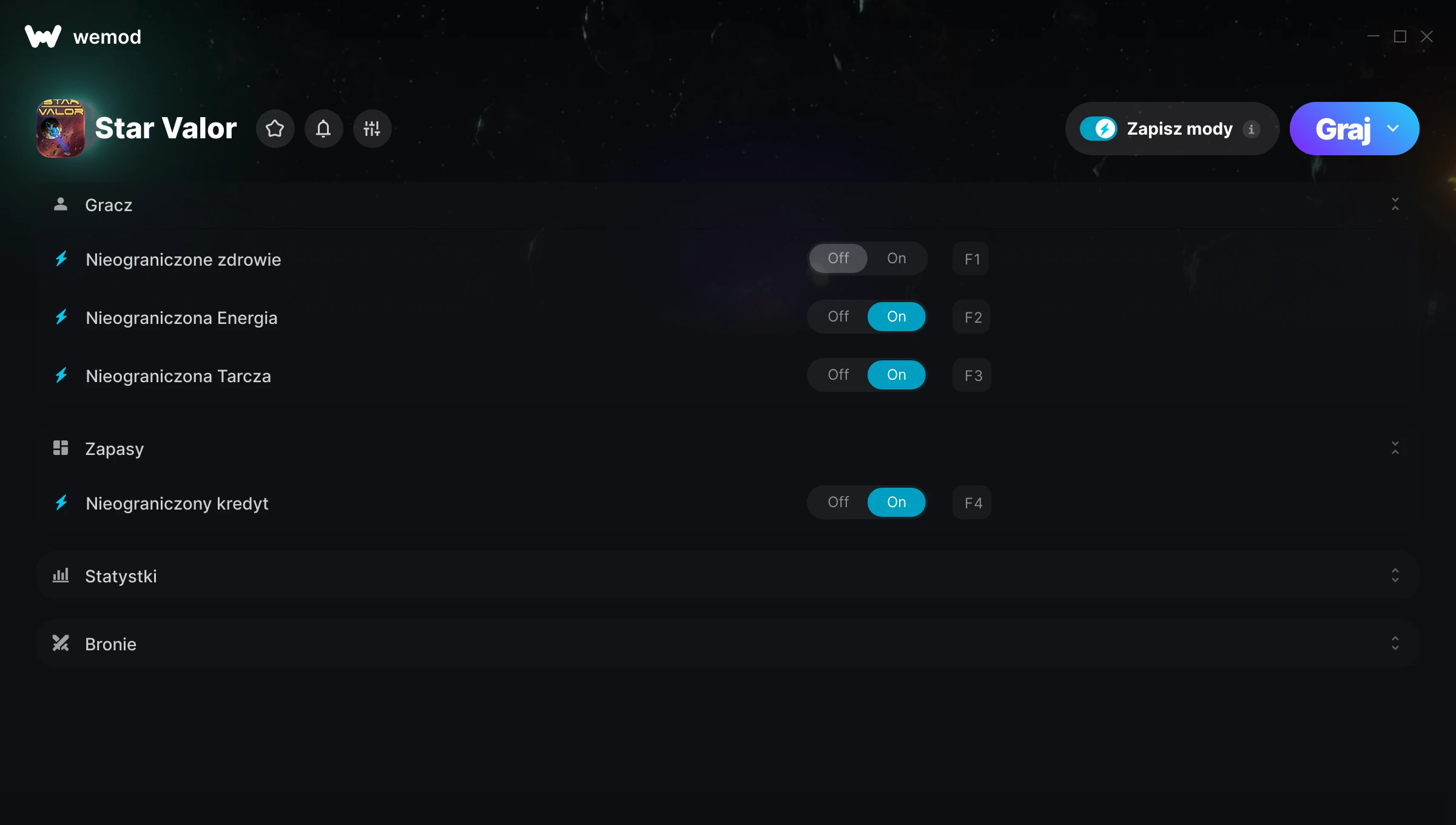85MB Windows ...lub odwiedź nas na swoim komputerze, aby pobrać aplikację Pobierz Nieograniczone zdrowie, Nieograniczona Energia & 5 inny mod for Star Valor with WeMod