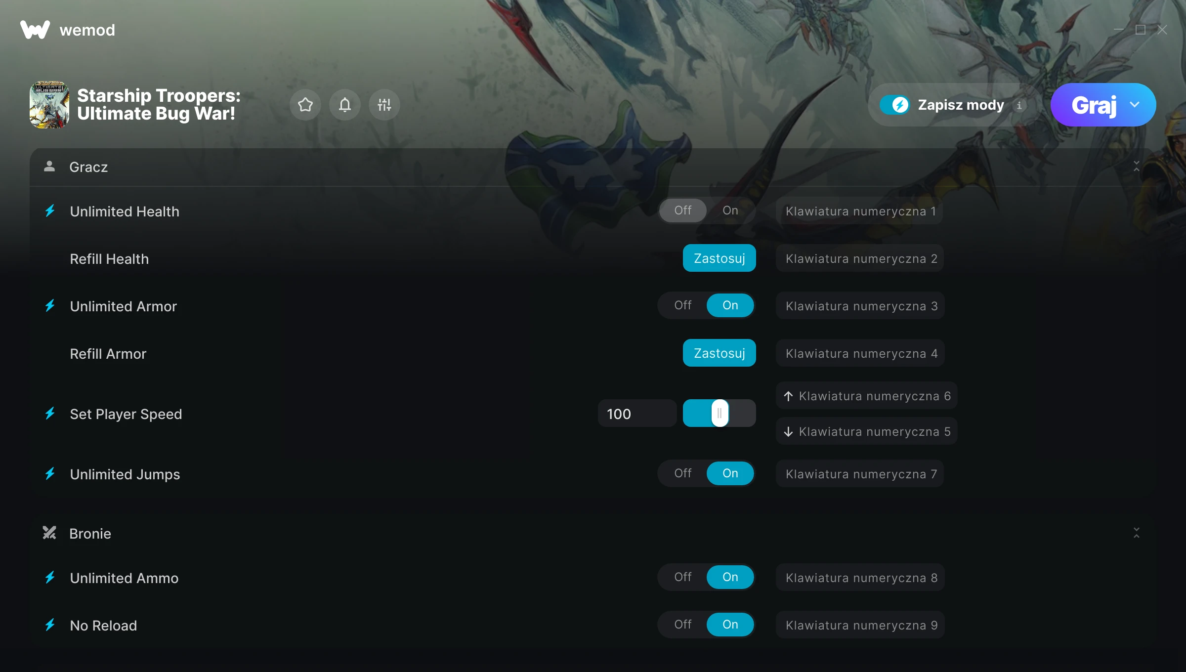 85MB Windows ...lub odwiedź nas na swoim komputerze, aby pobrać aplikację Pobierz Nieograniczone zdrowie, Uzupełnij Zdrowie & 7 inny mod for Starship Troopers: Ultimate Bug War! with WeMod