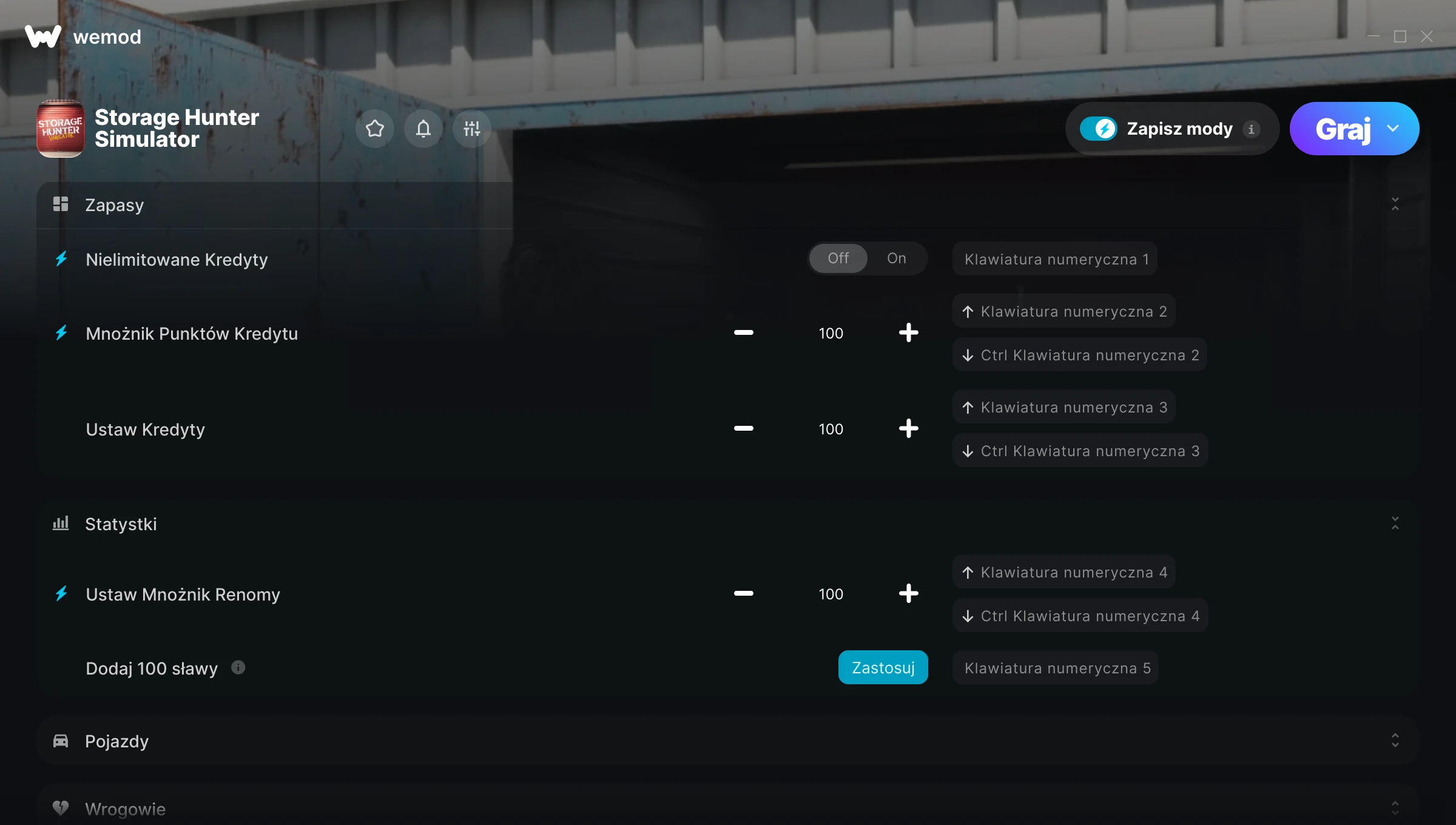 85MB Windows ...lub odwiedź nas na swoim komputerze, aby pobrać aplikację Pobierz Nielimitowane Kredyty, Mnożnik Punktów Kredytu & 25 inny mod for Storage Hunter Simulator with WeMod