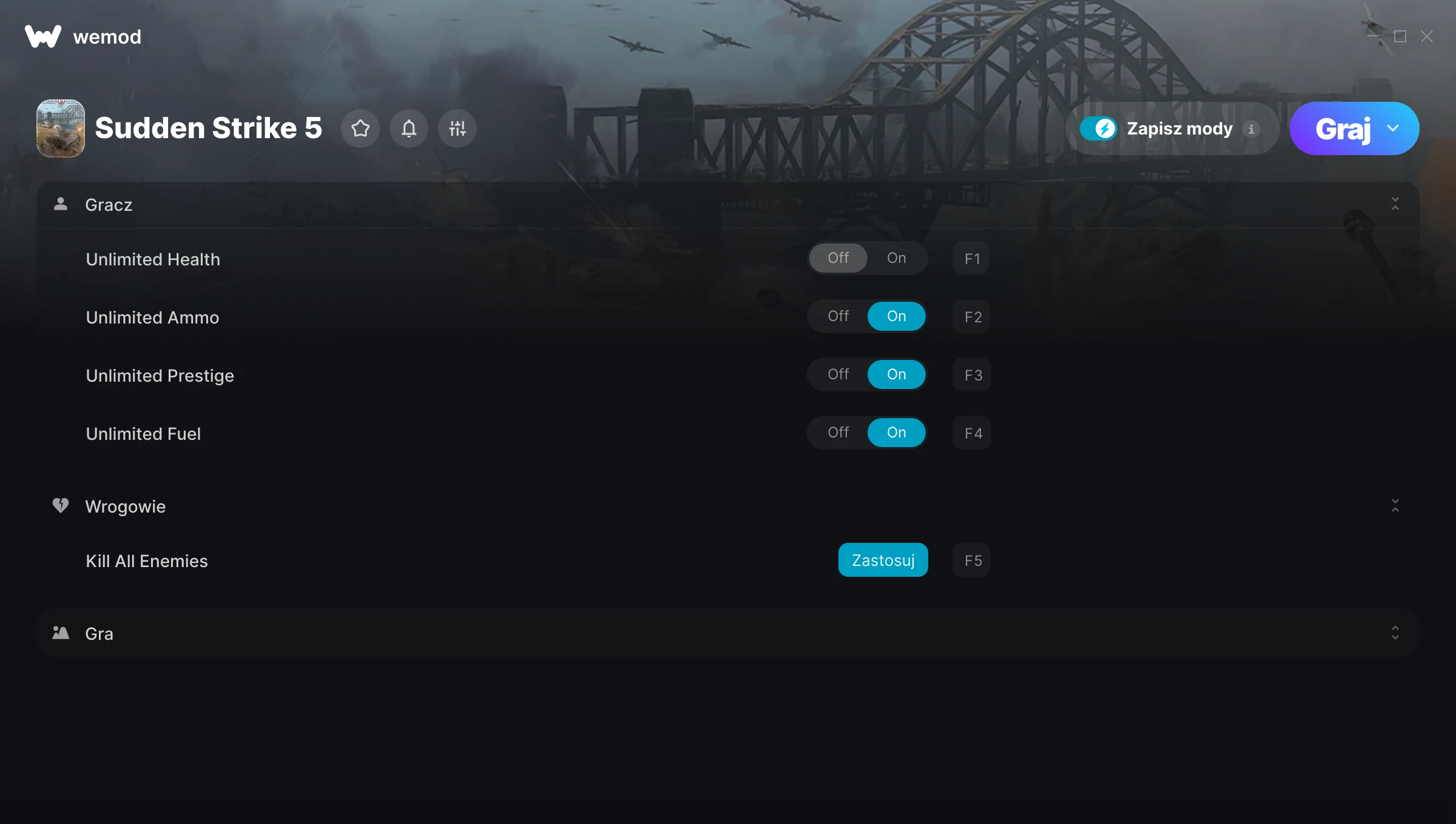 85MB Windows ...lub odwiedź nas na swoim komputerze, aby pobrać aplikację Pobierz Nieograniczone zdrowie, Nielimitowana amunicja & Inne mody: 4 for Sudden Strike 5 with WeMod