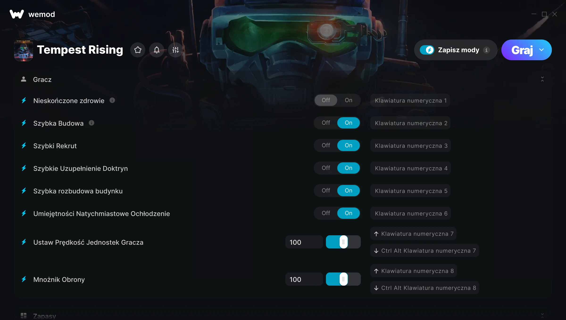 85MB Windows ...lub odwiedź nas na swoim komputerze, aby pobrać aplikację Pobierz Nieskończone zdrowie, Szybka Budowa & 21 inny mod for Tempest Rising with WeMod