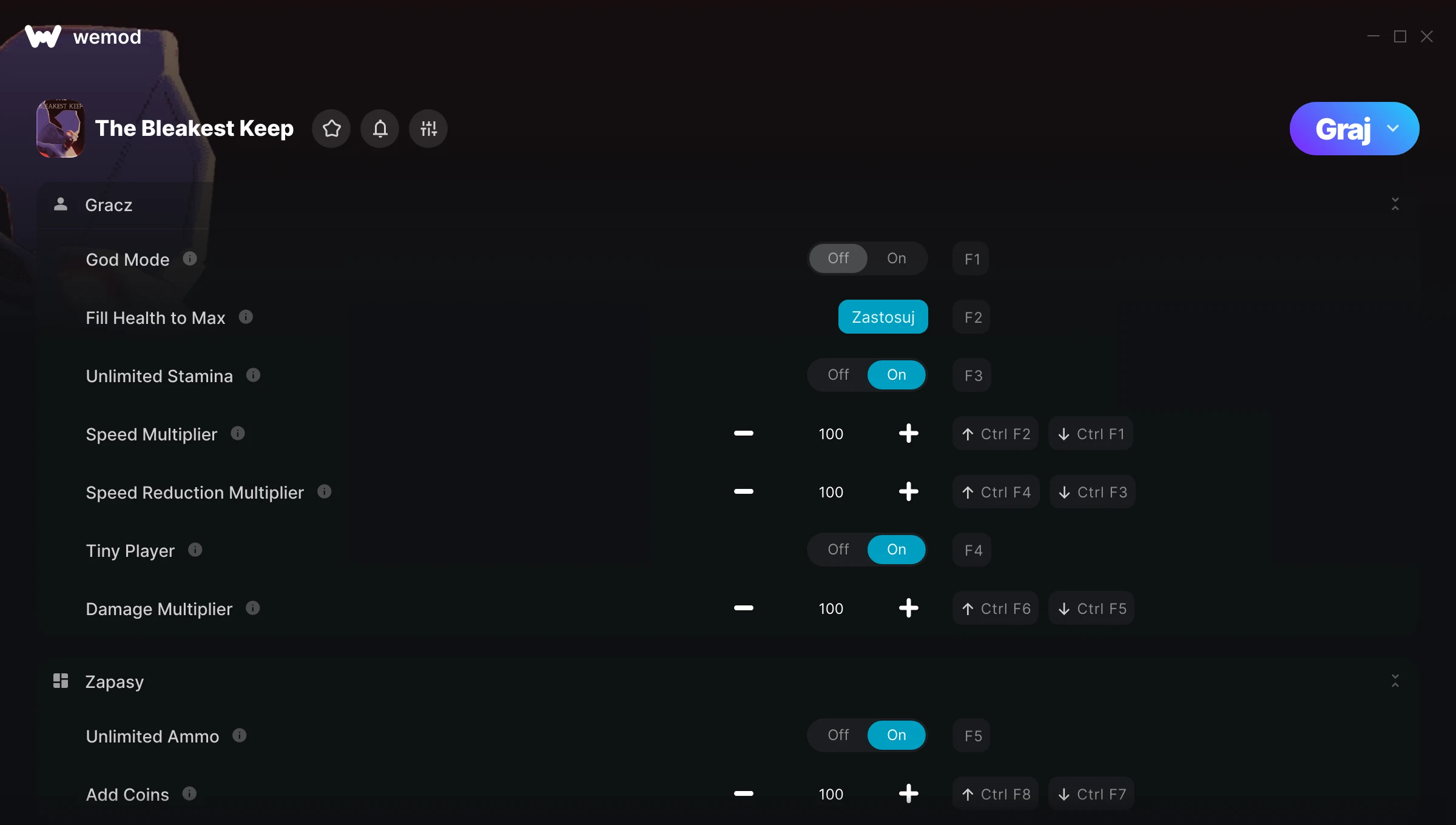 85MB Windows ...lub odwiedź nas na swoim komputerze, aby pobrać aplikację Pobierz Tryb Boga, Uzupełnij zdrowie do maksimum & 16 inny mod for The Bleakest Keep with WeMod