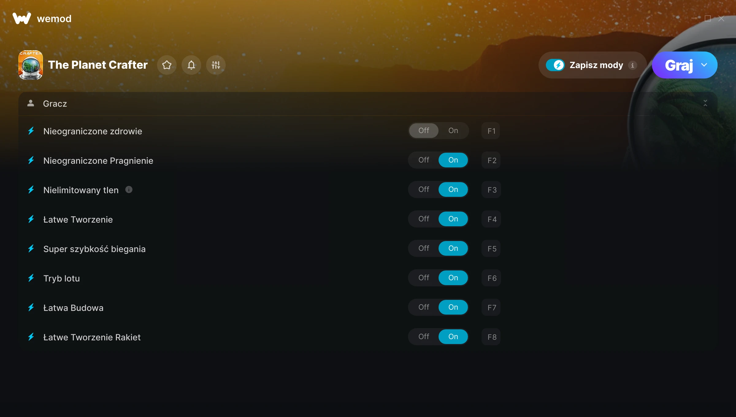The WeMod tools work great, but the only problem is the lack of settings. Maybe one to add would be either a multiplier to certain stats or terriformation, or add buttons to where players could add/subtract stats.