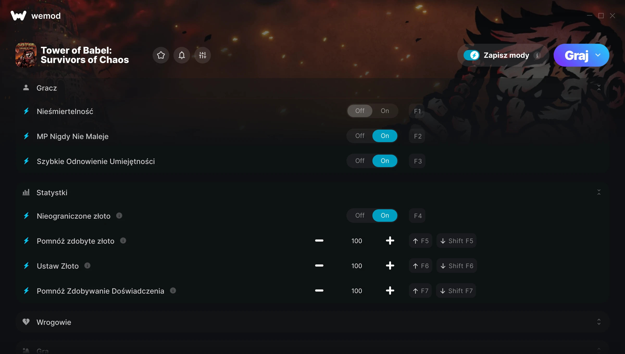 Dowiedz się więcejWeMod jest zawsze bezpieczny i darmowy dzięki naszej wielomilionowej społeczności graczy na całym świecie. Jesteśmy wspierani przez subskrybentów WeMod Pro. Sprawdź nasze recenzje na Trustpilot.
