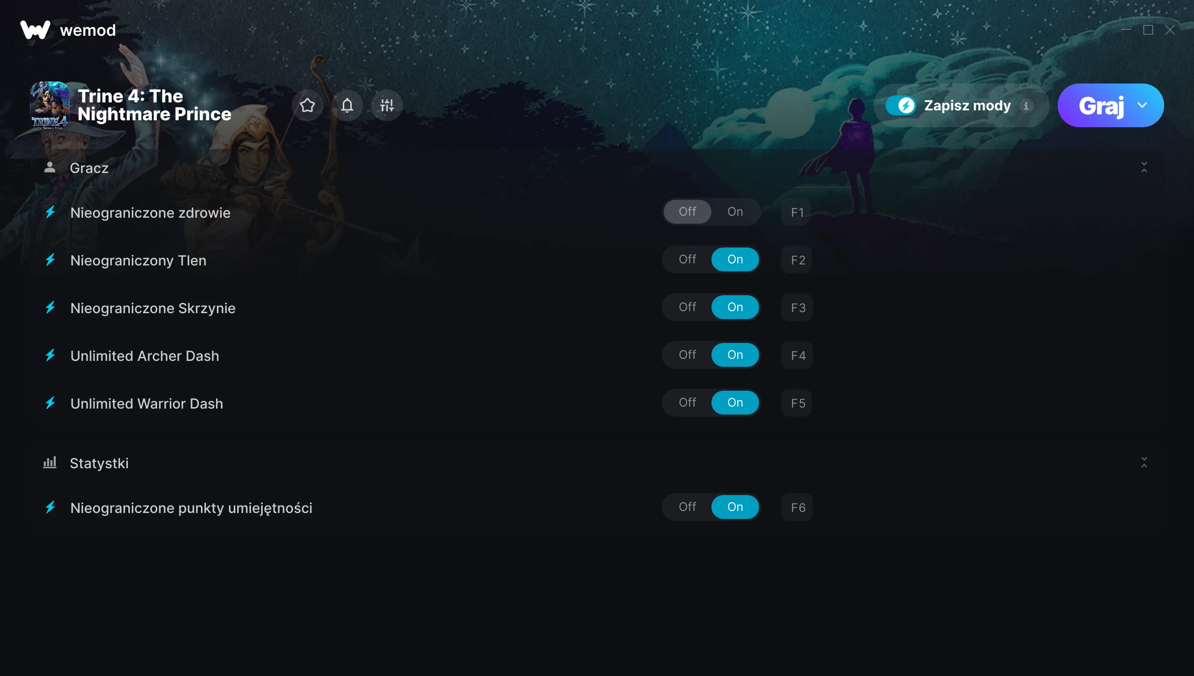 Dowiedz się więcejWeMod jest zawsze bezpieczny i darmowy dzięki naszej wielomilionowej społeczności graczy na całym świecie. Jesteśmy wspierani przez subskrybentów WeMod Pro. Sprawdź nasze recenzje na Trustpilot.