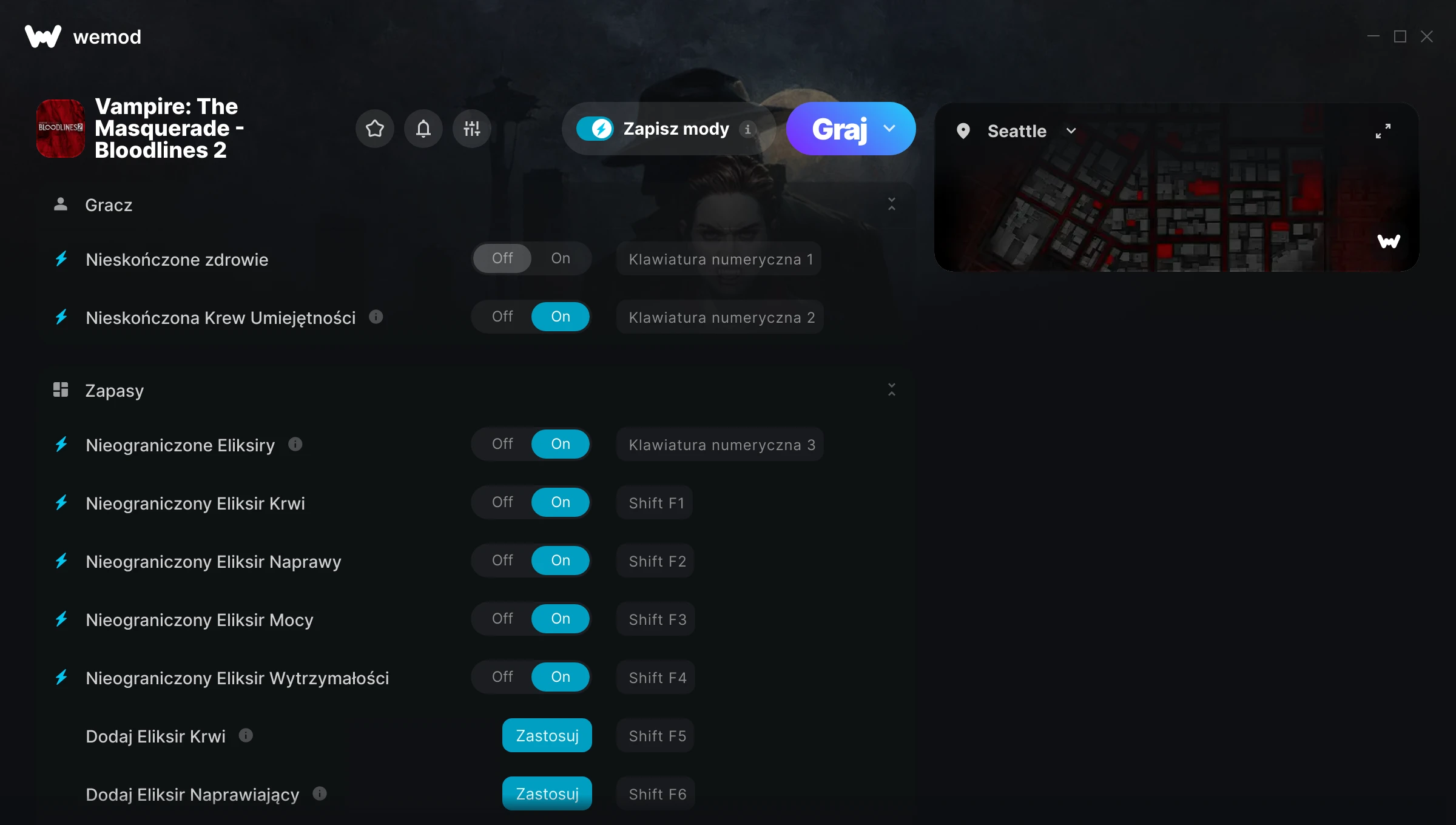 85MB Windows ...lub odwiedź nas na swoim komputerze, aby pobrać aplikację Pobierz Nieskończone zdrowie, Nieskończona Krew Umiejętności & Inne mody: 24 for Vampire: The Masquerade - Bloodlines 2 with WeMod