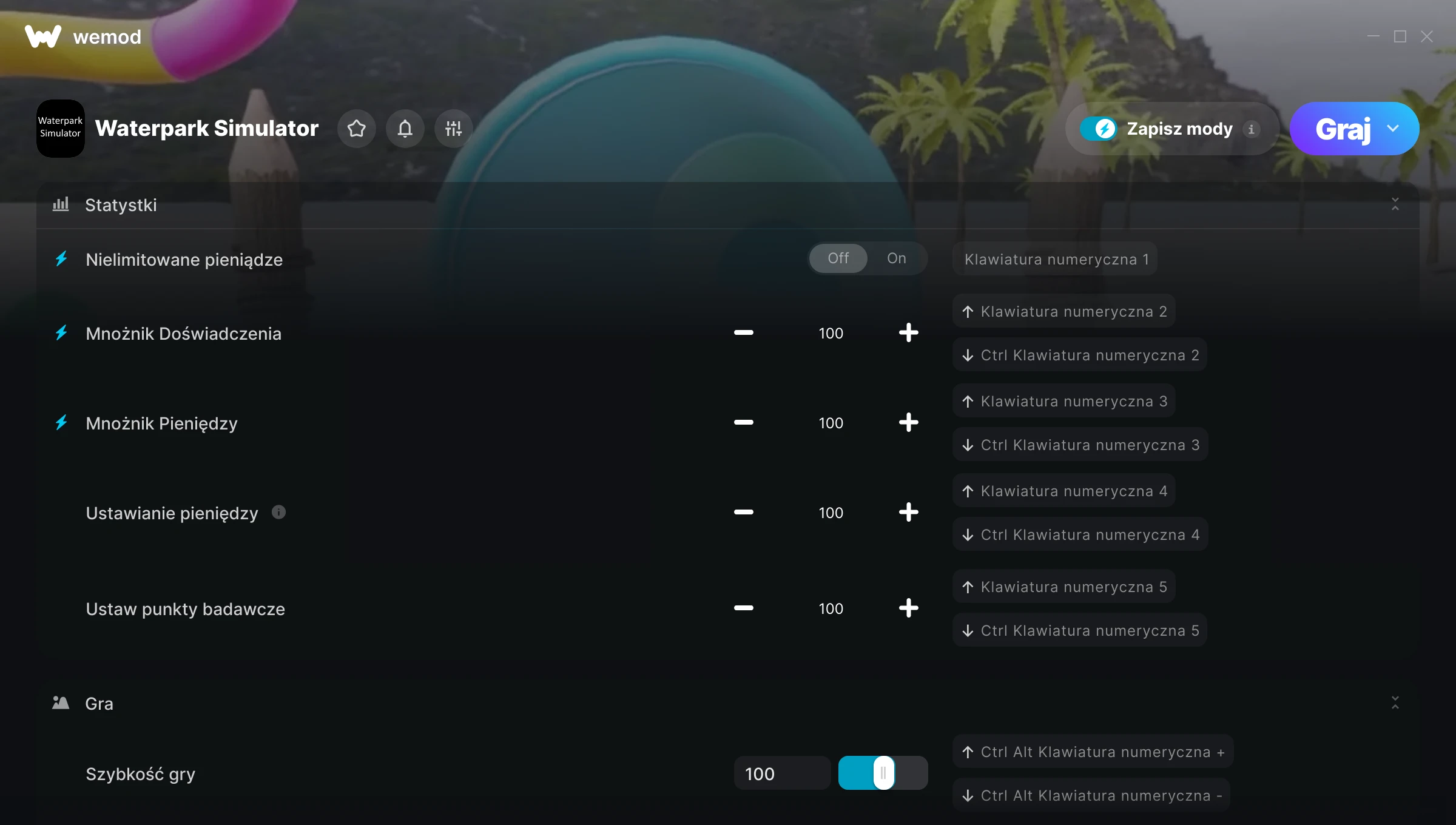 85MB Windows ...lub odwiedź nas na swoim komputerze, aby pobrać aplikację Pobierz Nielimitowane pieniądze, Mnożnik Doświadczenia & 5 inny mod for Waterpark Simulator with WeMod