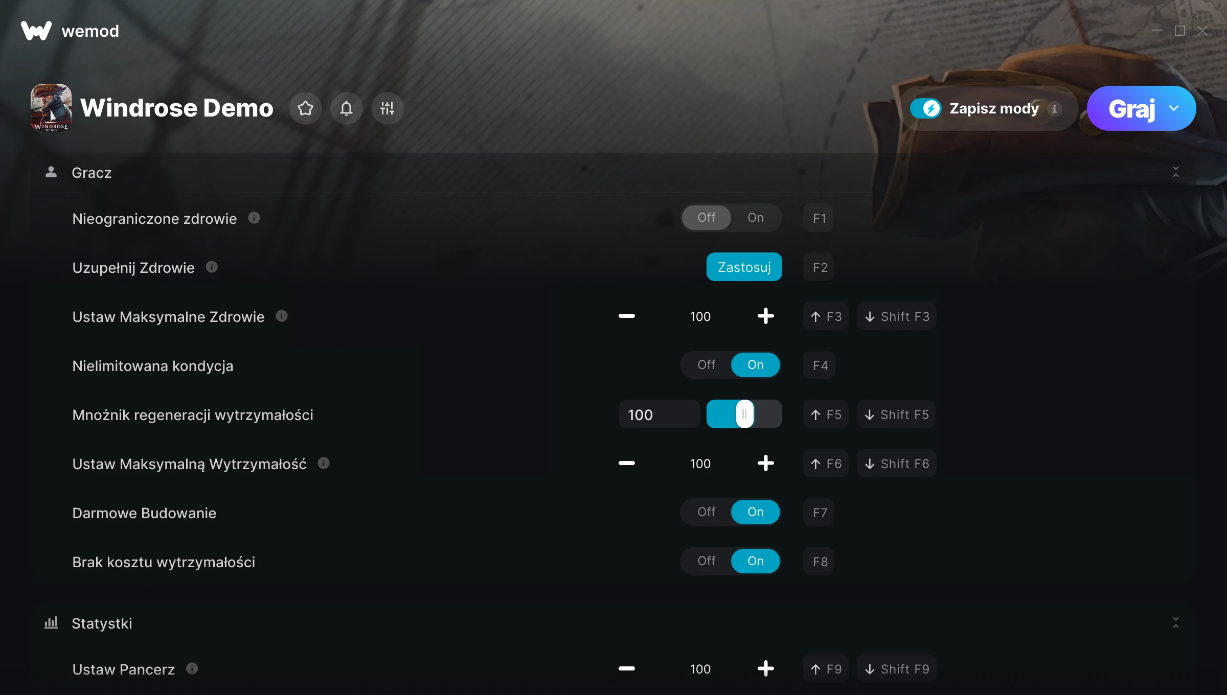 85MB Windows ...lub odwiedź nas na swoim komputerze, aby pobrać aplikację Pobierz Nieograniczone zdrowie, Uzupełnij Zdrowie & 12 inny mod for Windrose Demo with WeMod