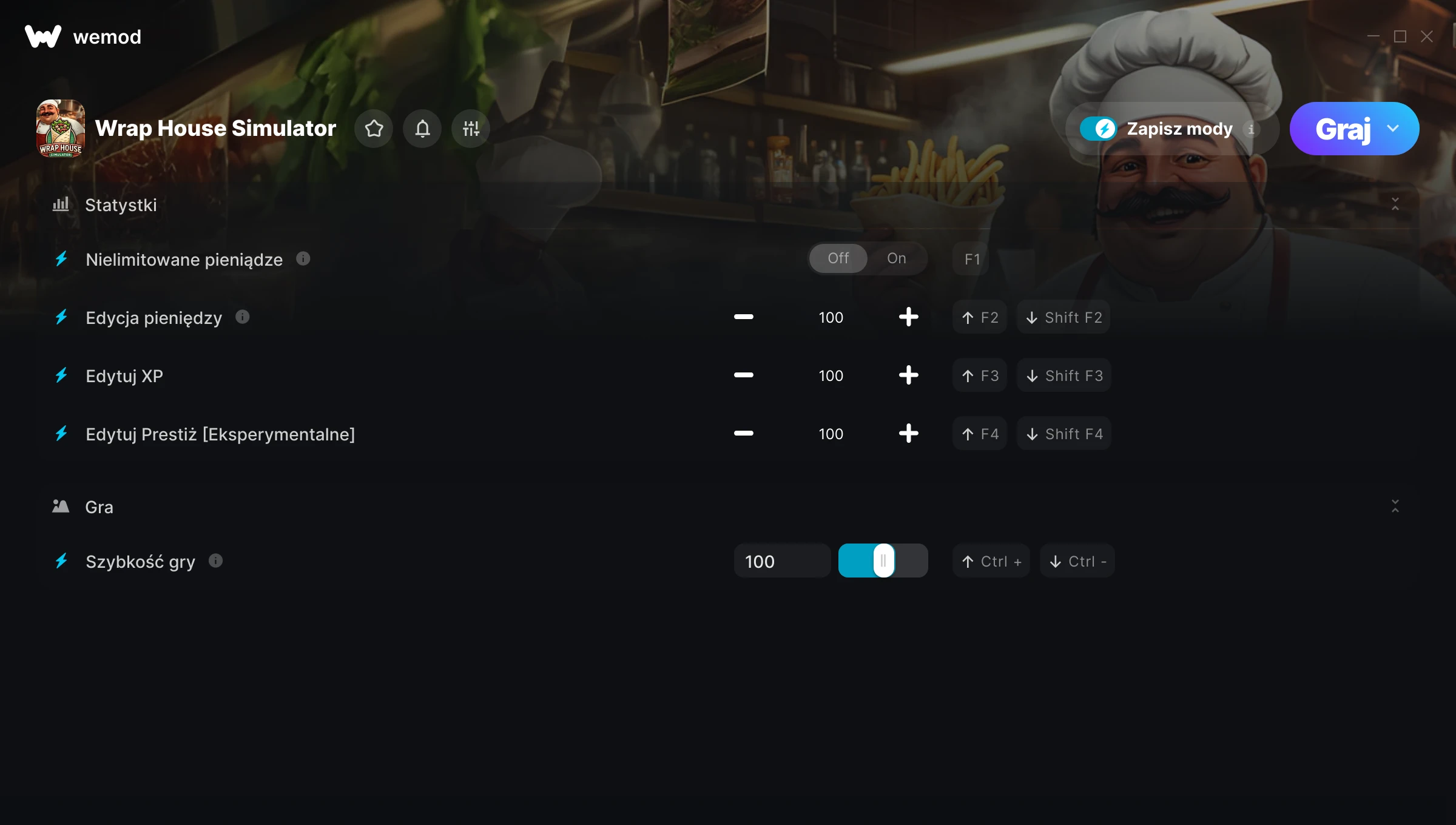 Dowiedz się więcejWeMod jest zawsze bezpieczny i darmowy dzięki naszej wielomilionowej społeczności graczy na całym świecie. Jesteśmy wspierani przez subskrybentów WeMod Pro. Sprawdź nasze recenzje na Trustpilot.