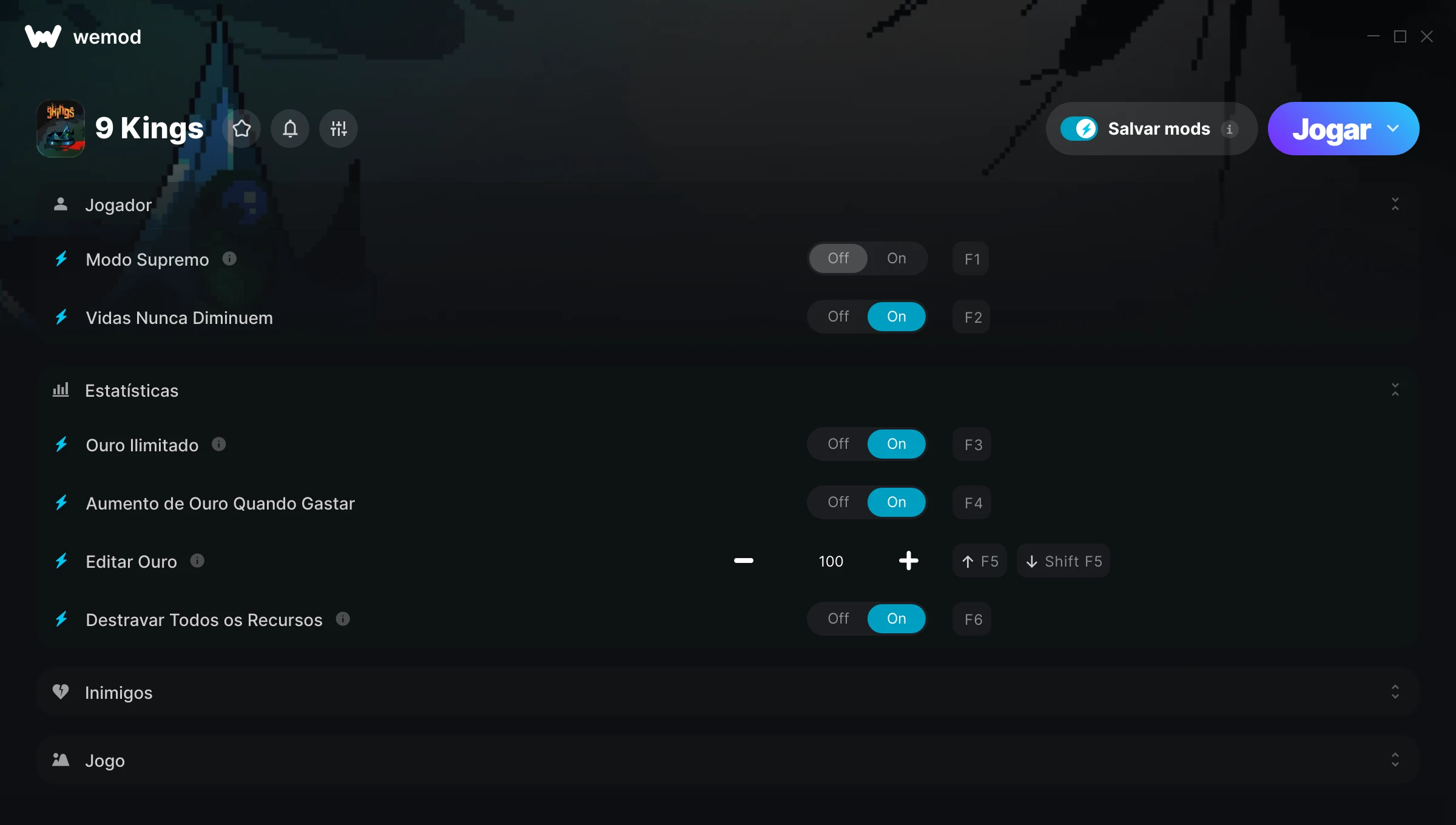 O WeMod é sempre seguro e gratuito graças à nossa comunidade de milhões de jogadores ao redor do mundo. Somos sustentados pelos assinantes do WeMod Pro. Confira nossas avaliações no Trustpilot.