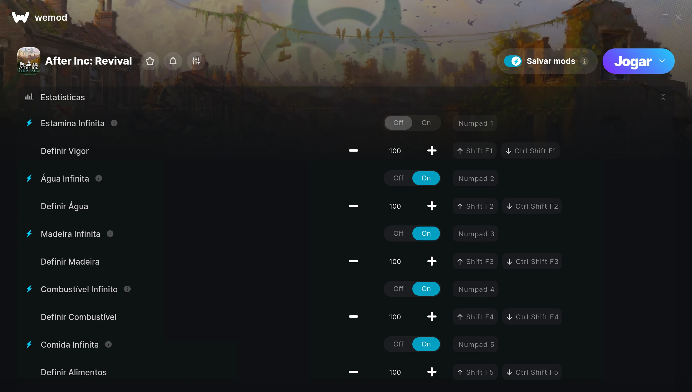 Como uso as trapaças em After Inc: Revival?O WeMod exibirá todos os jogos no seu PC com segurança. Abra um jogo da lista e simplesmente pressione Jogar. Depois que o jogo for carregado e você estiver no jogo, você poderá começar a ativar diferentes trapaças!Vai funcionar com a minha versão do jogo?O WeMod usa tecnologia avançada para detectar a versão do jogo que você está rodando e avisar se é suportada. Se não for, você ainda terá a opção de tentar assim mesmo ou solicitar uma atualização!
