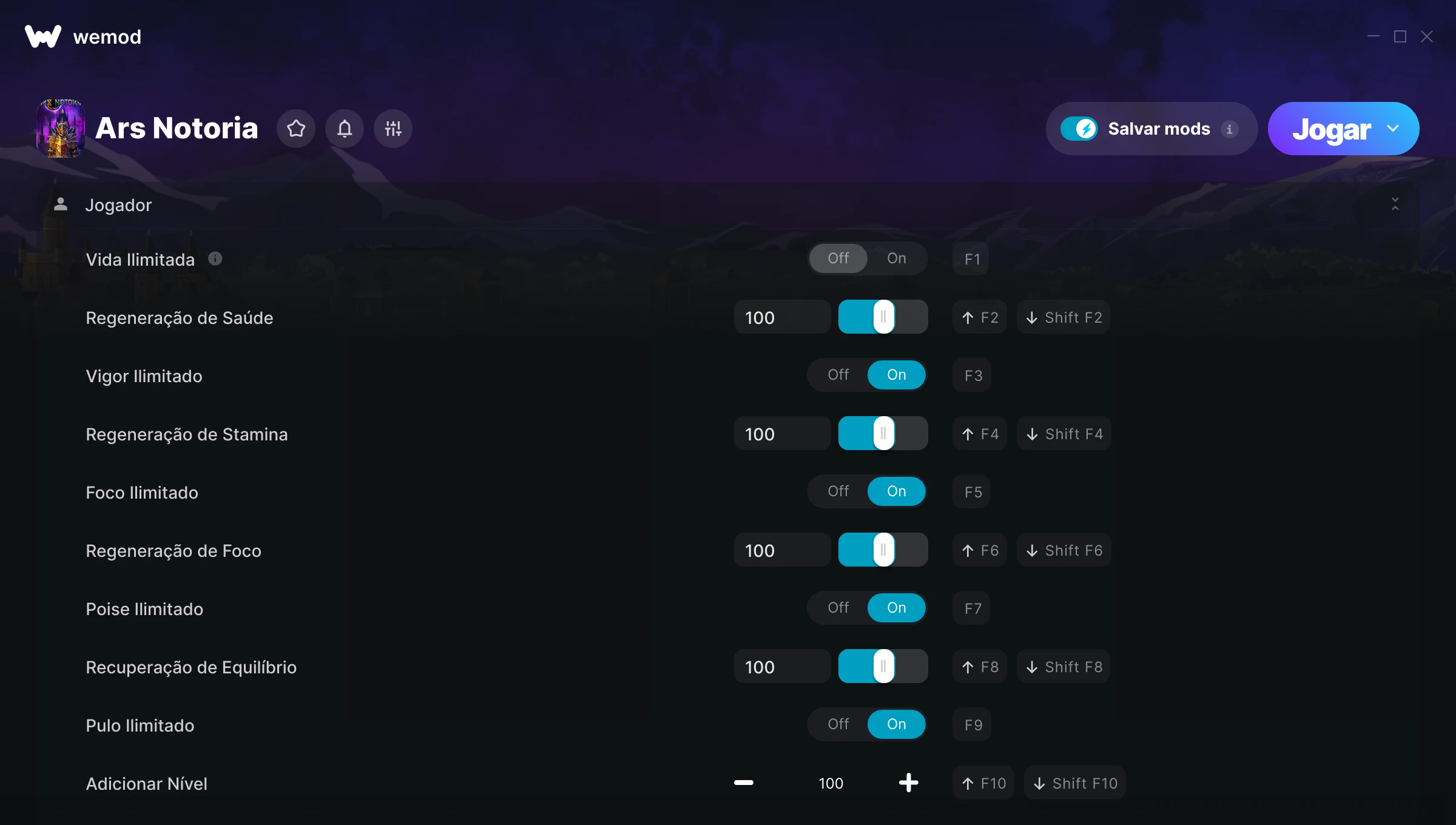 Como uso as trapaças em Ars Notoria?O WeMod exibirá todos os jogos no seu PC com segurança. Abra um jogo da lista e simplesmente pressione Jogar. Depois que o jogo for carregado e você estiver no jogo, você poderá começar a ativar diferentes trapaças!Vai funcionar com a minha versão do jogo?O WeMod usa tecnologia avançada para detectar a versão do jogo que você está rodando e avisar se é suportada. Se não for, você ainda terá a opção de tentar assim mesmo ou solicitar uma atualização!