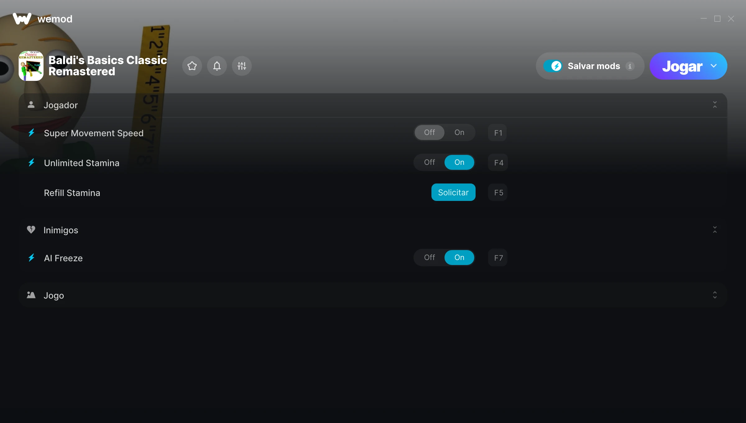 Como uso as trapaças em Baldi's Basics Classic Remastered?O WeMod exibirá todos os jogos no seu PC com segurança. Abra um jogo da lista e simplesmente pressione Jogar. Depois que o jogo for carregado e você estiver no jogo, você poderá começar a ativar diferentes trapaças!Vai funcionar com a minha versão do jogo?O WeMod usa tecnologia avançada para detectar a versão do jogo que você está rodando e avisar se é suportada. Se não for, você ainda terá a opção de tentar assim mesmo ou solicitar uma atualização!