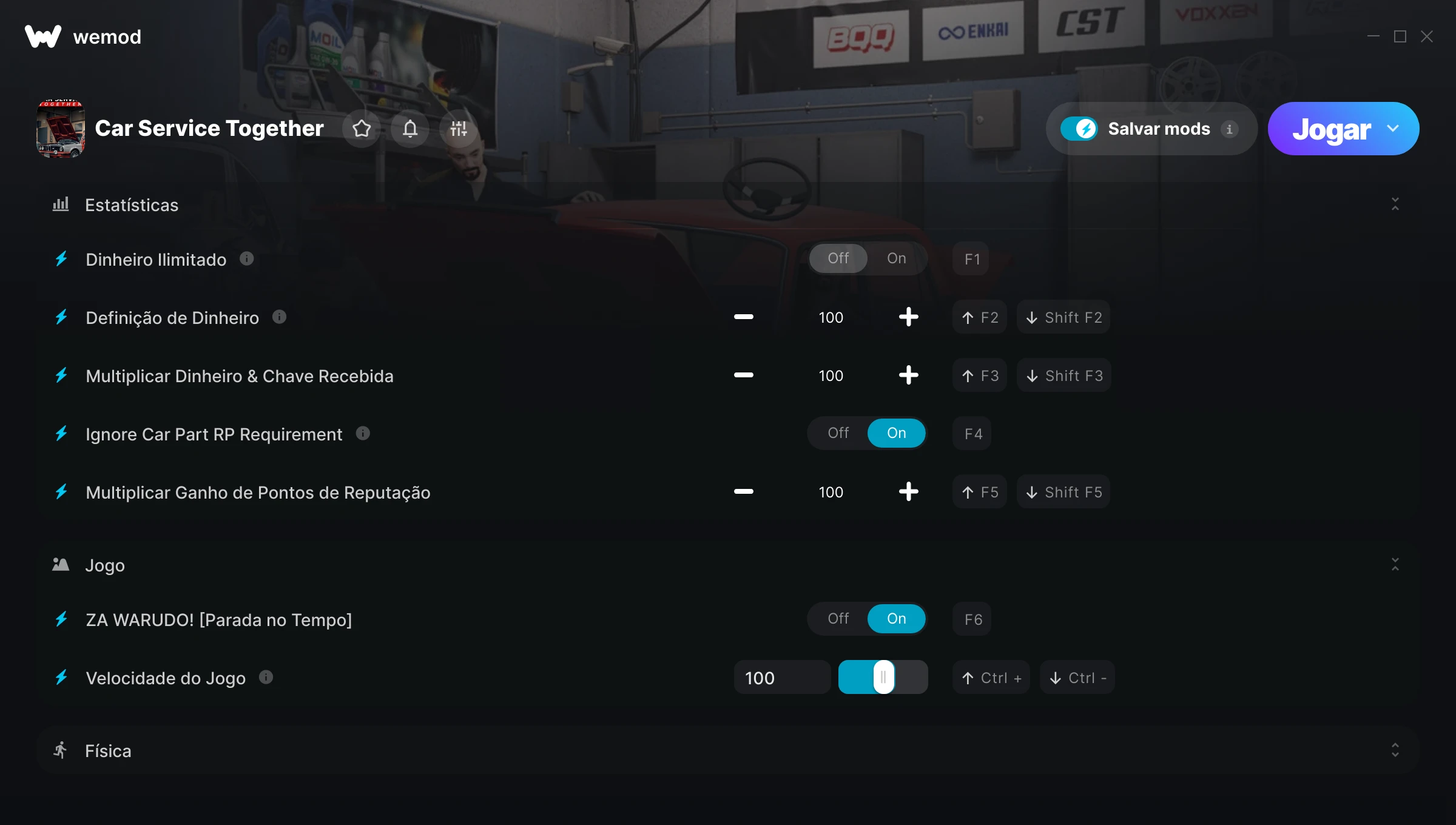 Como uso as trapaças em Car Service Together?O WeMod exibirá todos os jogos no seu PC com segurança. Abra um jogo da lista e simplesmente pressione Jogar. Depois que o jogo for carregado e você estiver no jogo, você poderá começar a ativar diferentes trapaças!Vai funcionar com a minha versão do jogo?O WeMod usa tecnologia avançada para detectar a versão do jogo que você está rodando e avisar se é suportada. Se não for, você ainda terá a opção de tentar assim mesmo ou solicitar uma atualização!