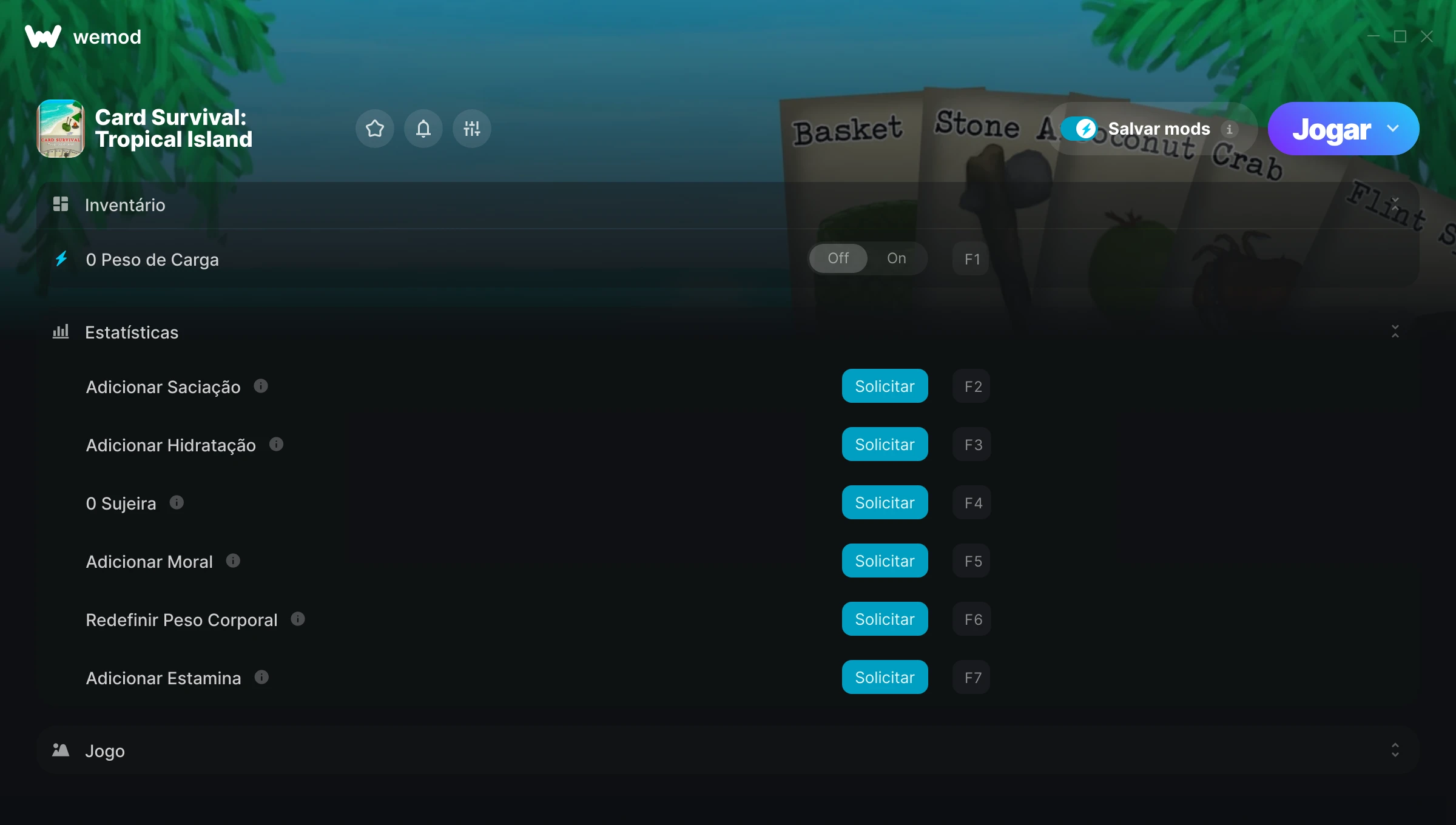 Como uso as trapaças em Card Survival: Tropical Island?O WeMod exibirá todos os jogos no seu PC com segurança. Abra um jogo da lista e simplesmente pressione Jogar. Depois que o jogo for carregado e você estiver no jogo, você poderá começar a ativar diferentes trapaças!Vai funcionar com a minha versão do jogo?O WeMod usa tecnologia avançada para detectar a versão do jogo que você está rodando e avisar se é suportada. Se não for, você ainda terá a opção de tentar assim mesmo ou solicitar uma atualização!