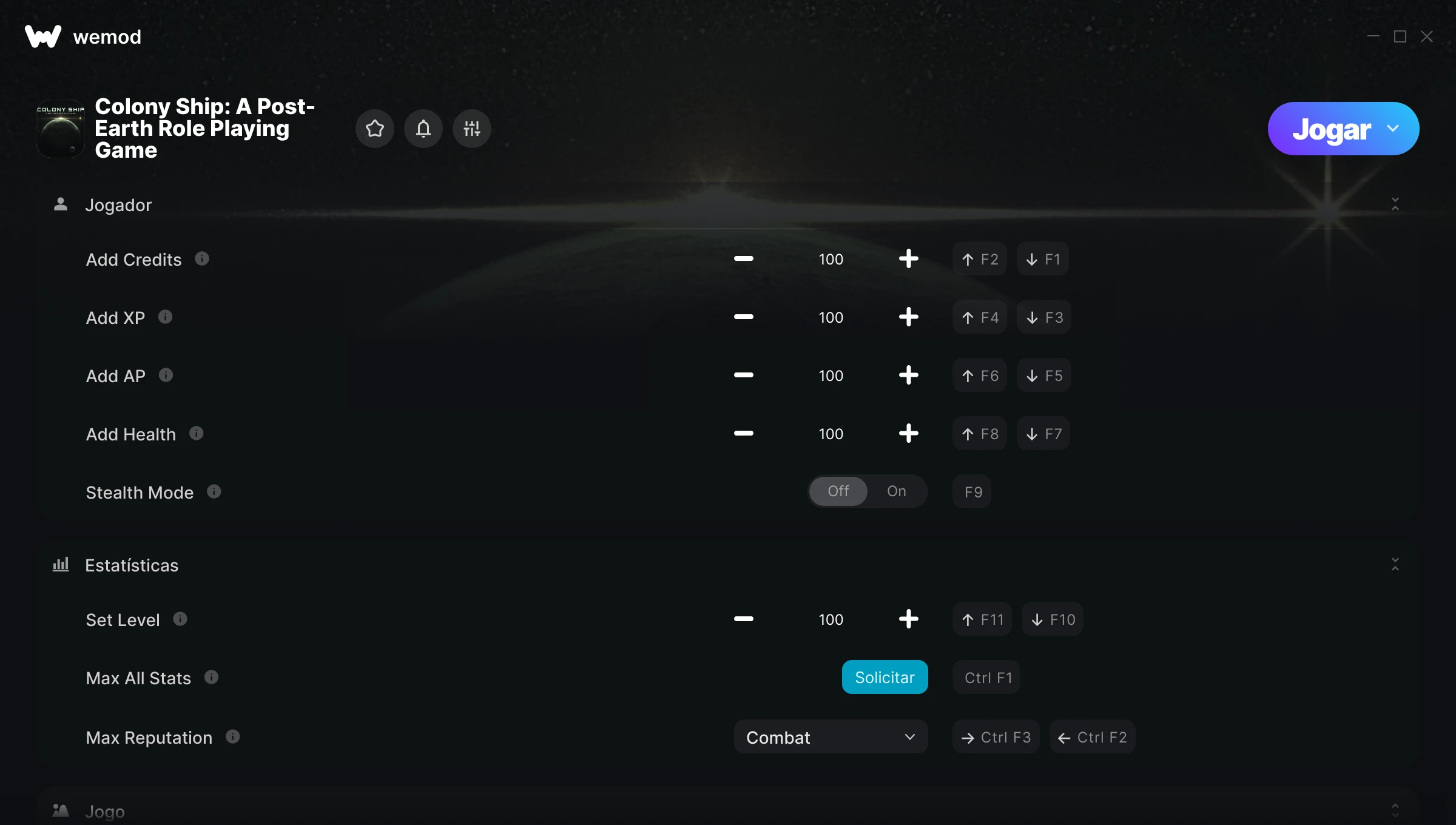 Como uso as trapaças em Colony Ship: A Post-Earth Role Playing Game?O WeMod exibirá todos os jogos no seu PC com segurança. Abra um jogo da lista e simplesmente pressione Jogar. Depois que o jogo for carregado e você estiver no jogo, você poderá começar a ativar diferentes trapaças!Vai funcionar com a minha versão do jogo?O WeMod usa tecnologia avançada para detectar a versão do jogo que você está rodando e avisar se é suportada. Se não for, você ainda terá a opção de tentar assim mesmo ou solicitar uma atualização!