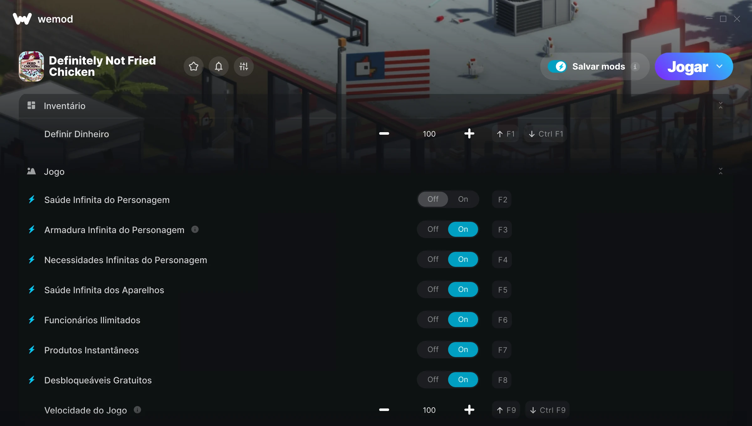 85MB Windows ...ou visite nossa página usando seu PC para baixar o aplicativo Obtenha Definir Dinheiro, Saúde Infinita do Personagem & 7 outros mods for Definitely Not Fried Chicken with WeMod