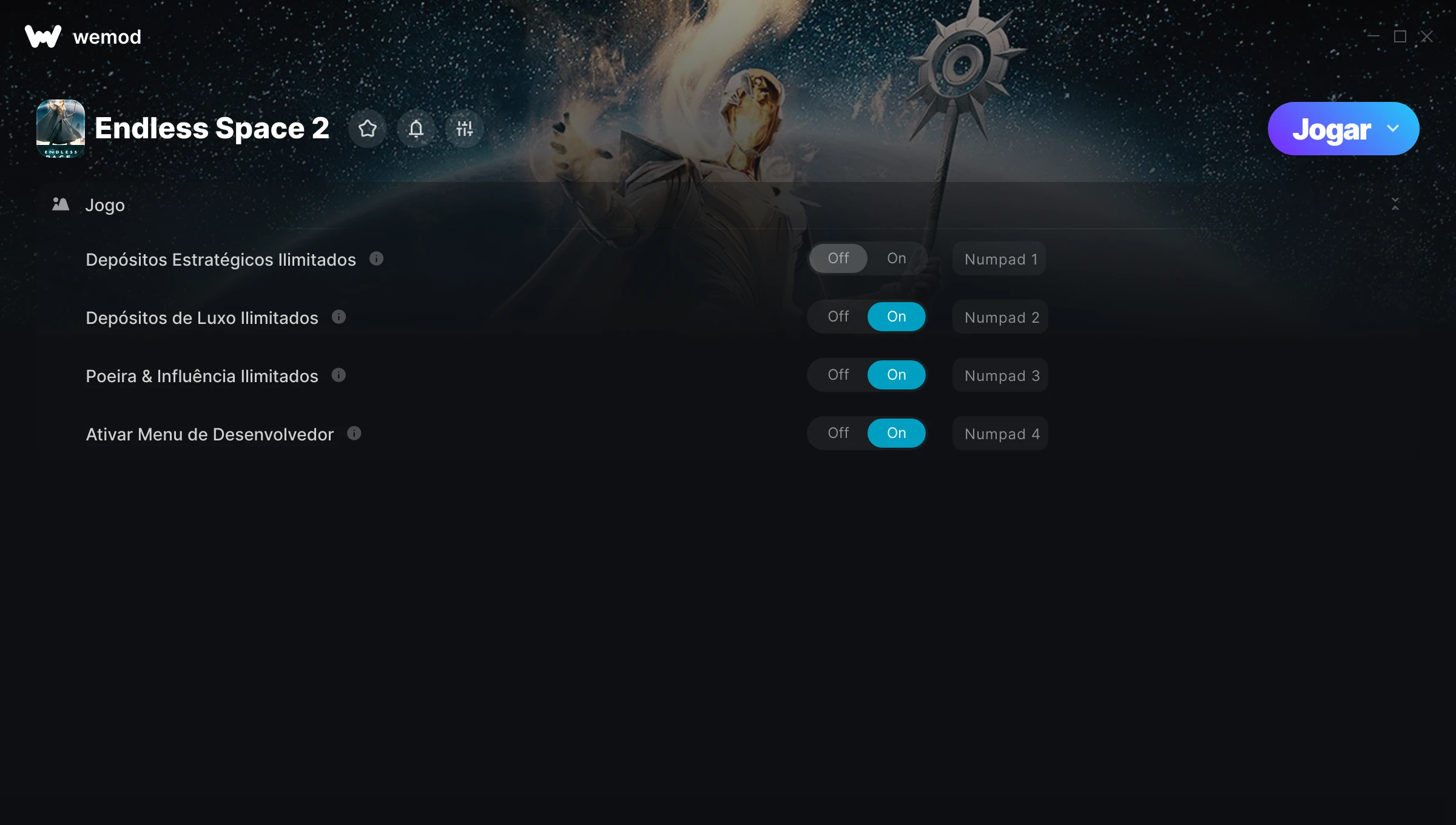Como uso as trapaças em Endless Space 2?