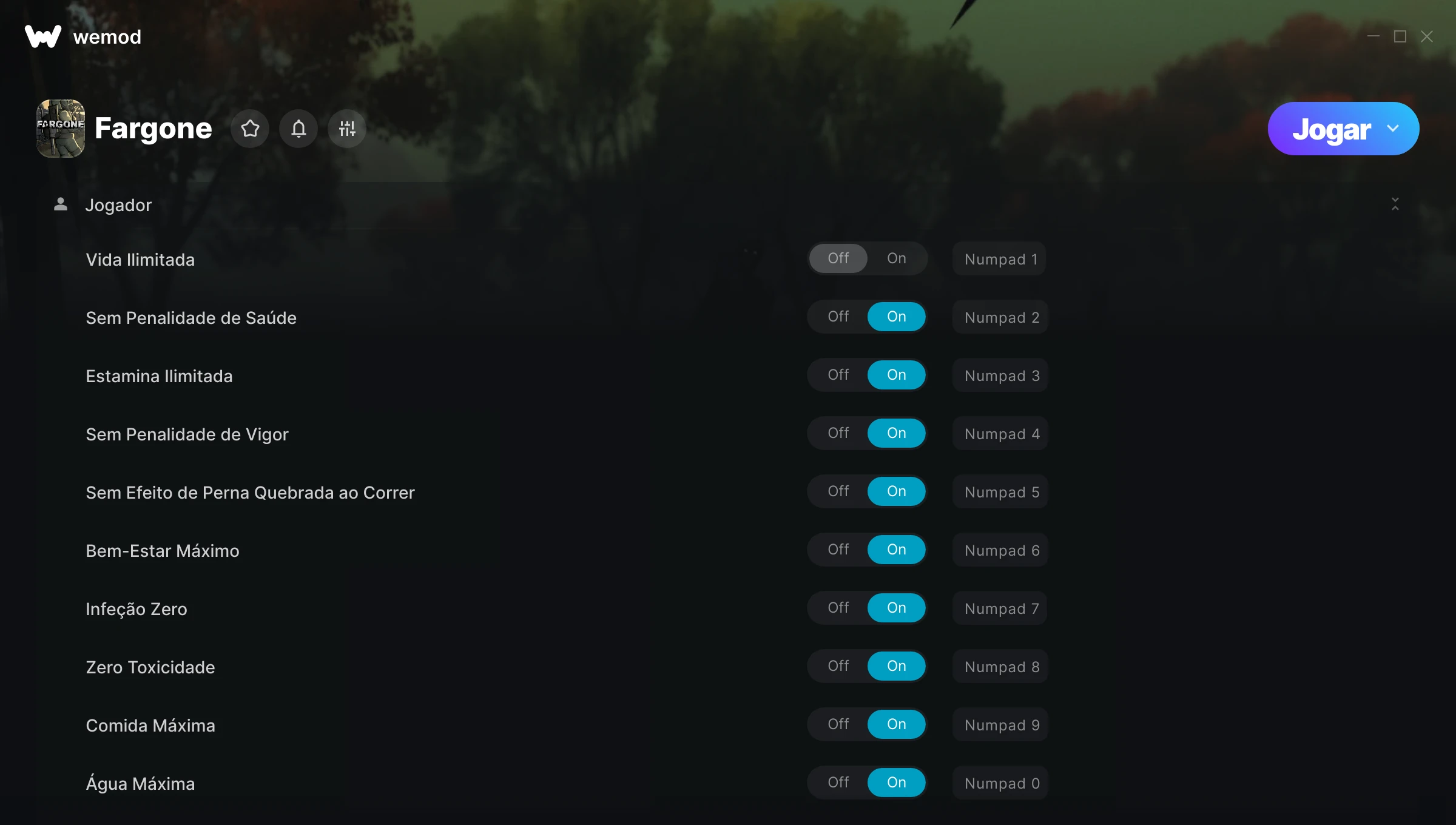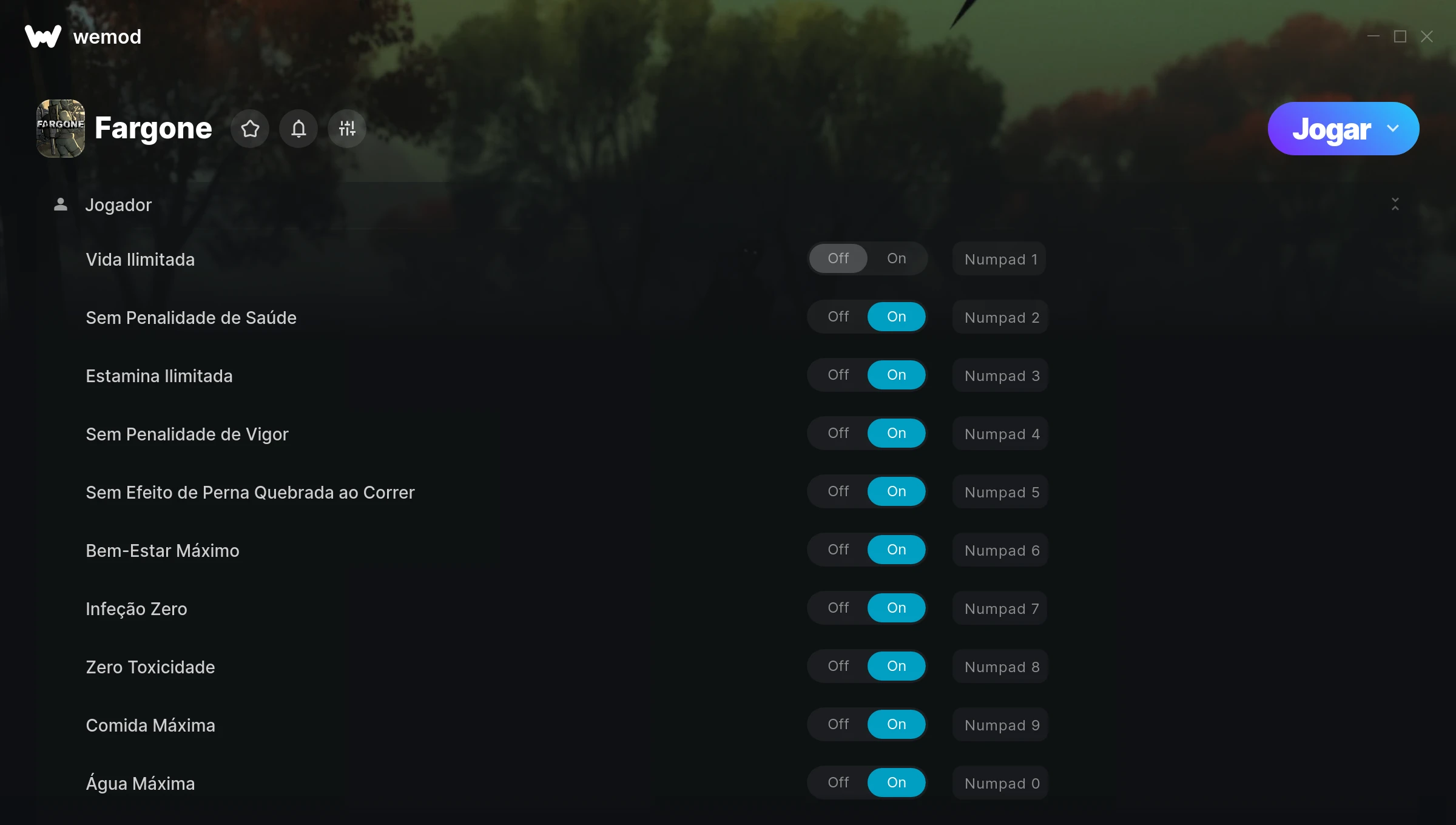 Como uso as trapaças em Fargone?O WeMod exibirá todos os jogos no seu PC com segurança. Abra um jogo da lista e simplesmente pressione Jogar. Depois que o jogo for carregado e você estiver no jogo, você poderá começar a ativar diferentes trapaças!Vai funcionar com a minha versão do jogo?O WeMod usa tecnologia avançada para detectar a versão do jogo que você está rodando e avisar se é suportada. Se não for, você ainda terá a opção de tentar assim mesmo ou solicitar uma atualização!