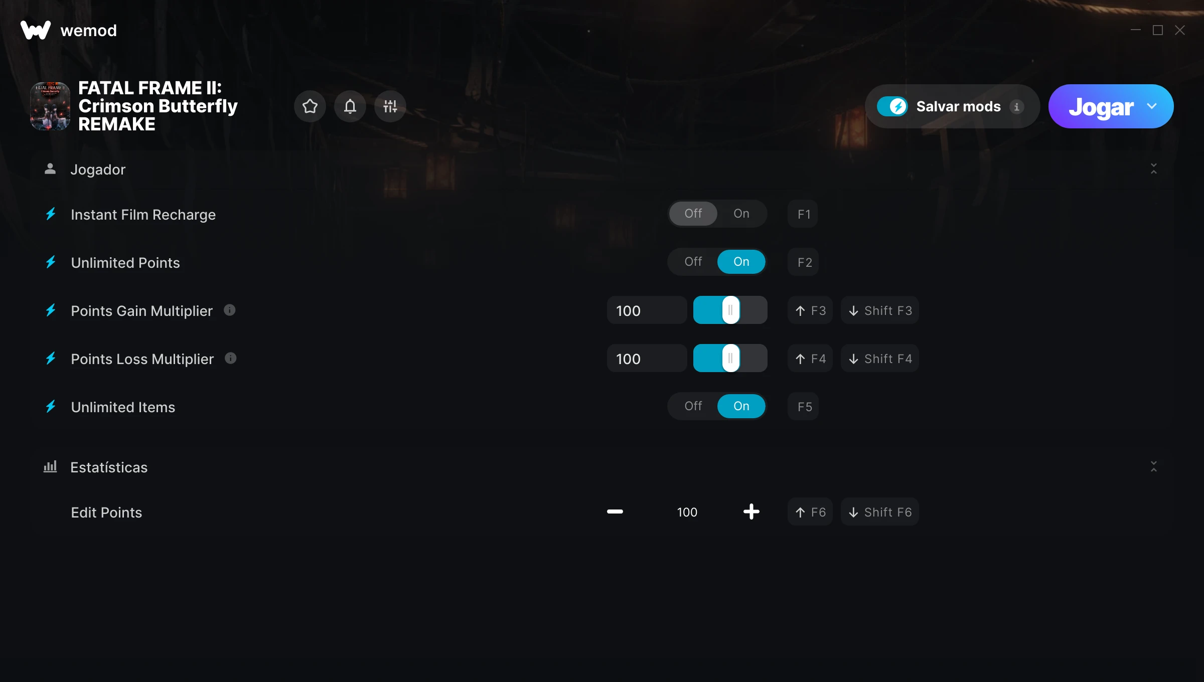 Como uso as trapaças em FATAL FRAME II: Crimson Butterfly REMAKE?O WeMod exibirá todos os jogos no seu PC com segurança. Abra um jogo da lista e simplesmente pressione Jogar. Depois que o jogo for carregado e você estiver no jogo, você poderá começar a ativar diferentes trapaças!Vai funcionar com a minha versão do jogo?O WeMod usa tecnologia avançada para detectar a versão do jogo que você está rodando e avisar se é suportada. Se não for, você ainda terá a opção de tentar assim mesmo ou solicitar uma atualização!
