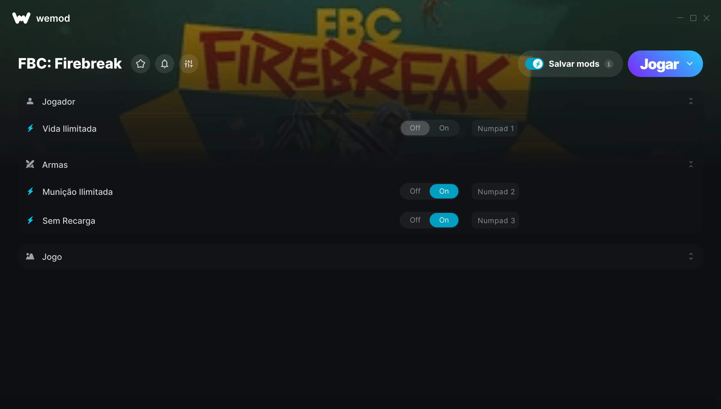 Como uso as trapaças em FBC: Firebreak?O WeMod exibirá todos os jogos no seu PC com segurança. Abra um jogo da lista e simplesmente pressione Jogar. Depois que o jogo for carregado e você estiver no jogo, você poderá começar a ativar diferentes trapaças!Vai funcionar com a minha versão do jogo?O WeMod usa tecnologia avançada para detectar a versão do jogo que você está rodando e avisar se é suportada. Se não for, você ainda terá a opção de tentar assim mesmo ou solicitar uma atualização!