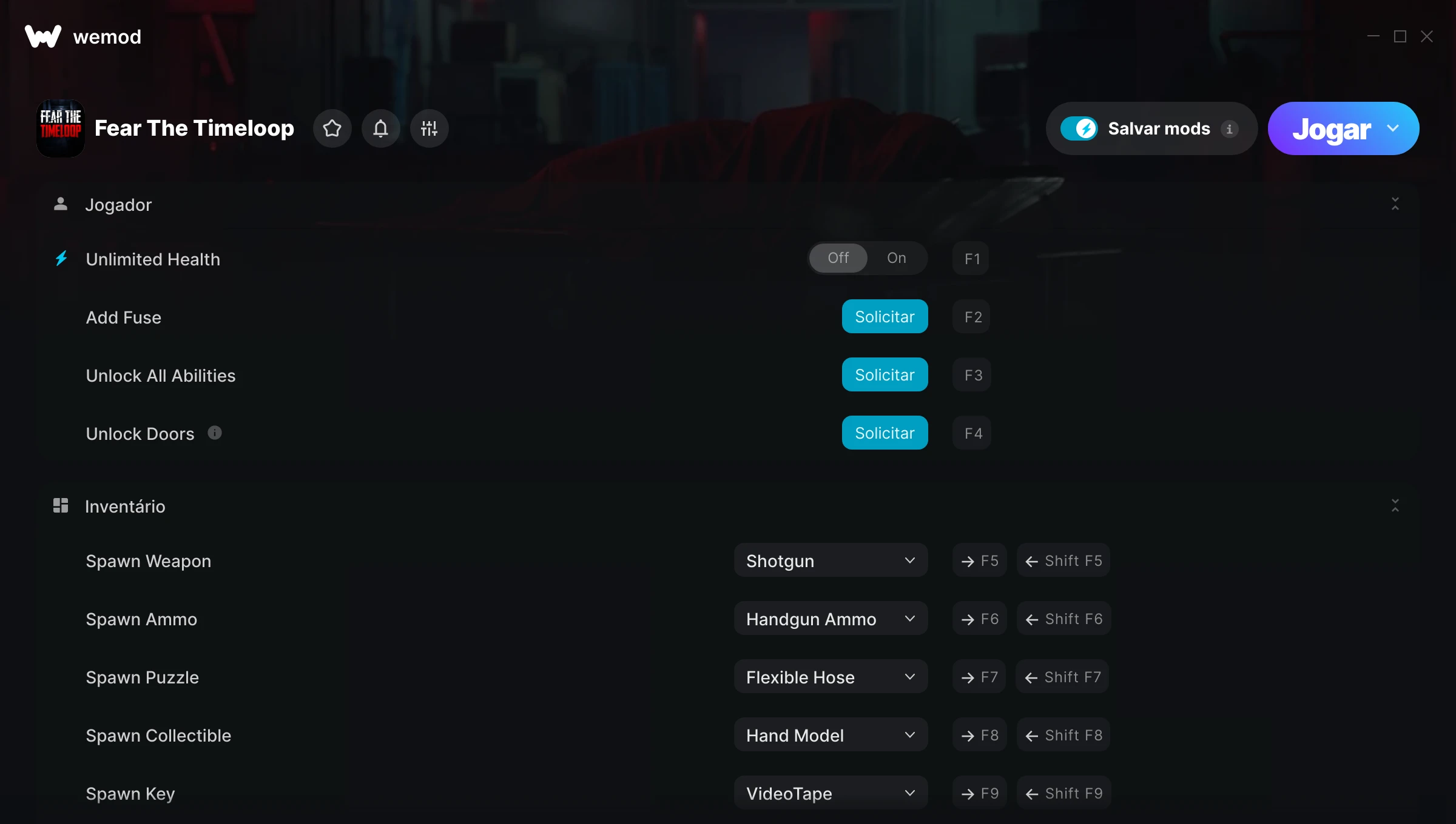 Como uso as trapaças em Fear The Timeloop?O WeMod exibirá todos os jogos no seu PC com segurança. Abra um jogo da lista e simplesmente pressione Jogar. Depois que o jogo for carregado e você estiver no jogo, você poderá começar a ativar diferentes trapaças!Vai funcionar com a minha versão do jogo?O WeMod usa tecnologia avançada para detectar a versão do jogo que você está rodando e avisar se é suportada. Se não for, você ainda terá a opção de tentar assim mesmo ou solicitar uma atualização!