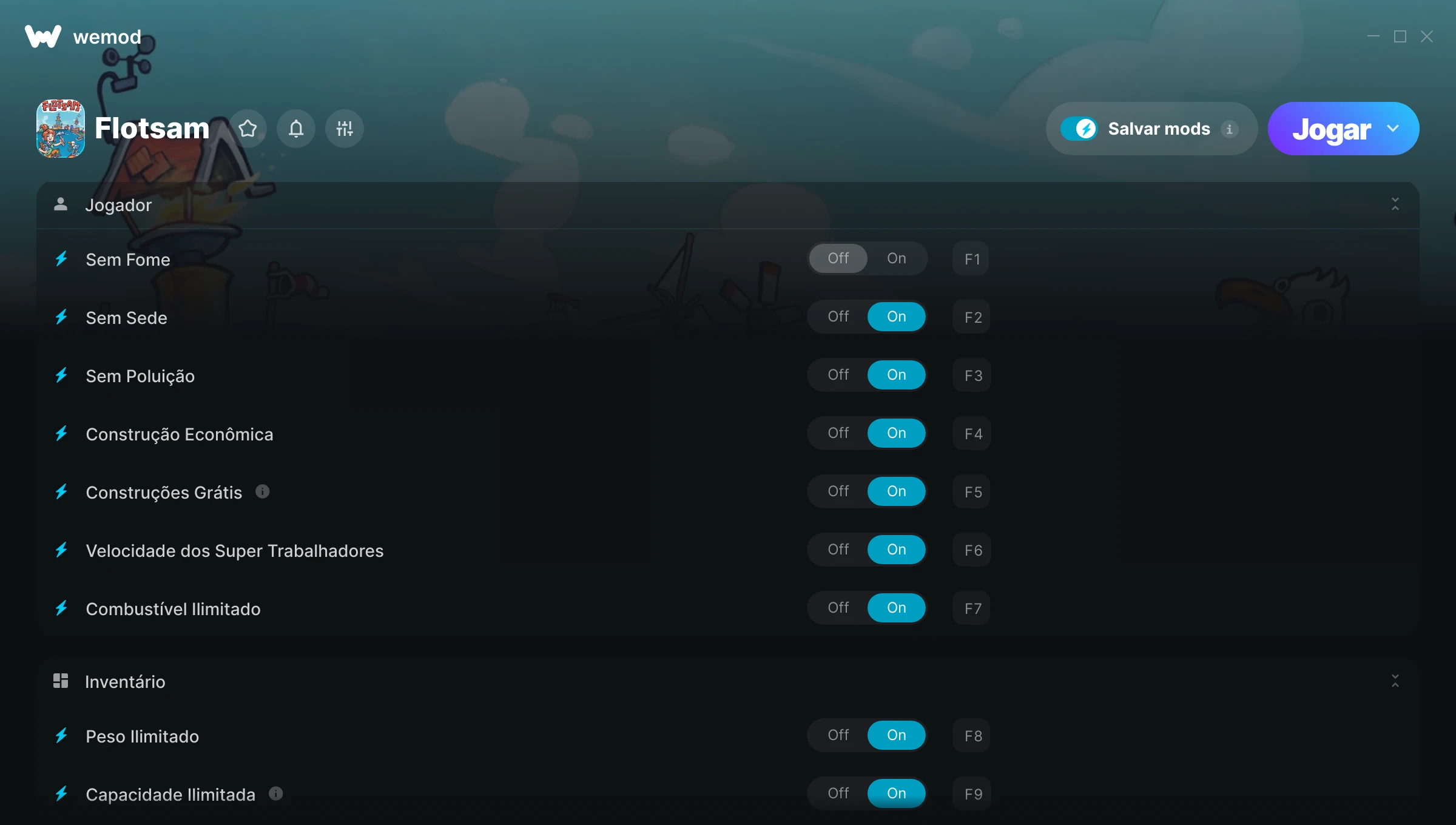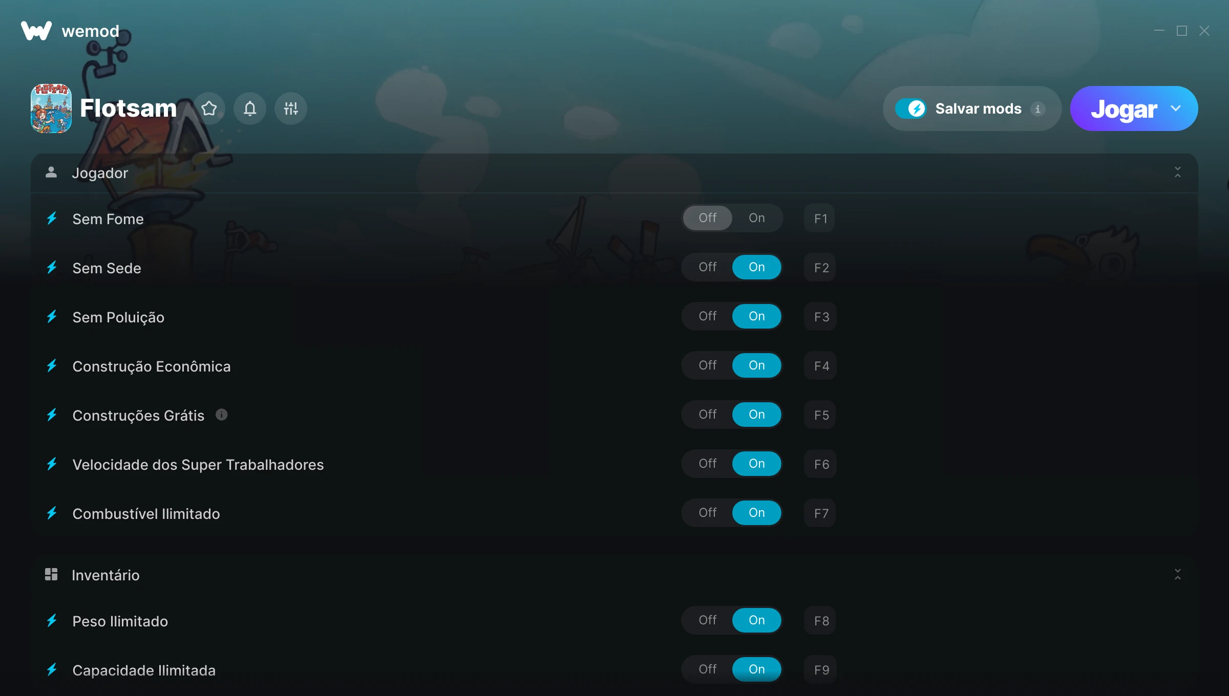 The level of water and food went down, despite my using Wemod. However the rest worked well enough.