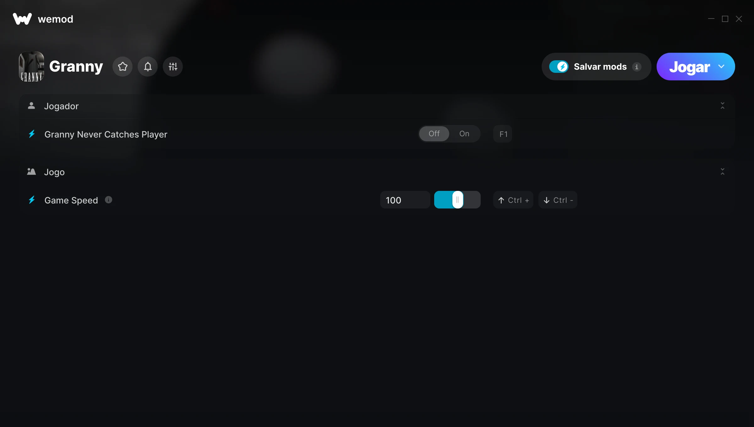 Como uso as trapaças em Granny?O WeMod exibirá todos os jogos no seu PC com segurança. Abra um jogo da lista e simplesmente pressione Jogar. Depois que o jogo for carregado e você estiver no jogo, você poderá começar a ativar diferentes trapaças!Vai funcionar com a minha versão do jogo?O WeMod usa tecnologia avançada para detectar a versão do jogo que você está rodando e avisar se é suportada. Se não for, você ainda terá a opção de tentar assim mesmo ou solicitar uma atualização!