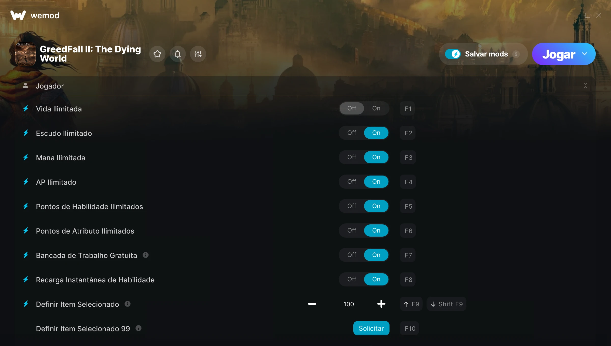 Como uso as trapaças em GreedFall: The Dying World?O WeMod exibirá todos os jogos no seu PC com segurança. Abra um jogo da lista e simplesmente pressione Jogar. Depois que o jogo for carregado e você estiver no jogo, você poderá começar a ativar diferentes trapaças!Vai funcionar com a minha versão do jogo?O WeMod usa tecnologia avançada para detectar a versão do jogo que você está rodando e avisar se é suportada. Se não for, você ainda terá a opção de tentar assim mesmo ou solicitar uma atualização!