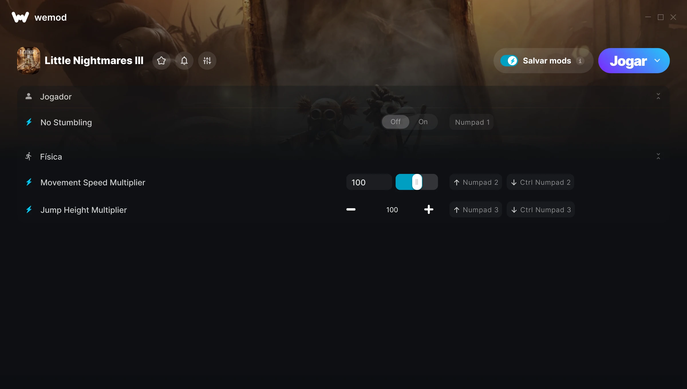 Como uso as trapaças em Little Nightmares III?O WeMod exibirá todos os jogos no seu PC com segurança. Abra um jogo da lista e simplesmente pressione Jogar. Depois que o jogo for carregado e você estiver no jogo, você poderá começar a ativar diferentes trapaças!Vai funcionar com a minha versão do jogo?O WeMod usa tecnologia avançada para detectar a versão do jogo que você está rodando e avisar se é suportada. Se não for, você ainda terá a opção de tentar assim mesmo ou solicitar uma atualização!