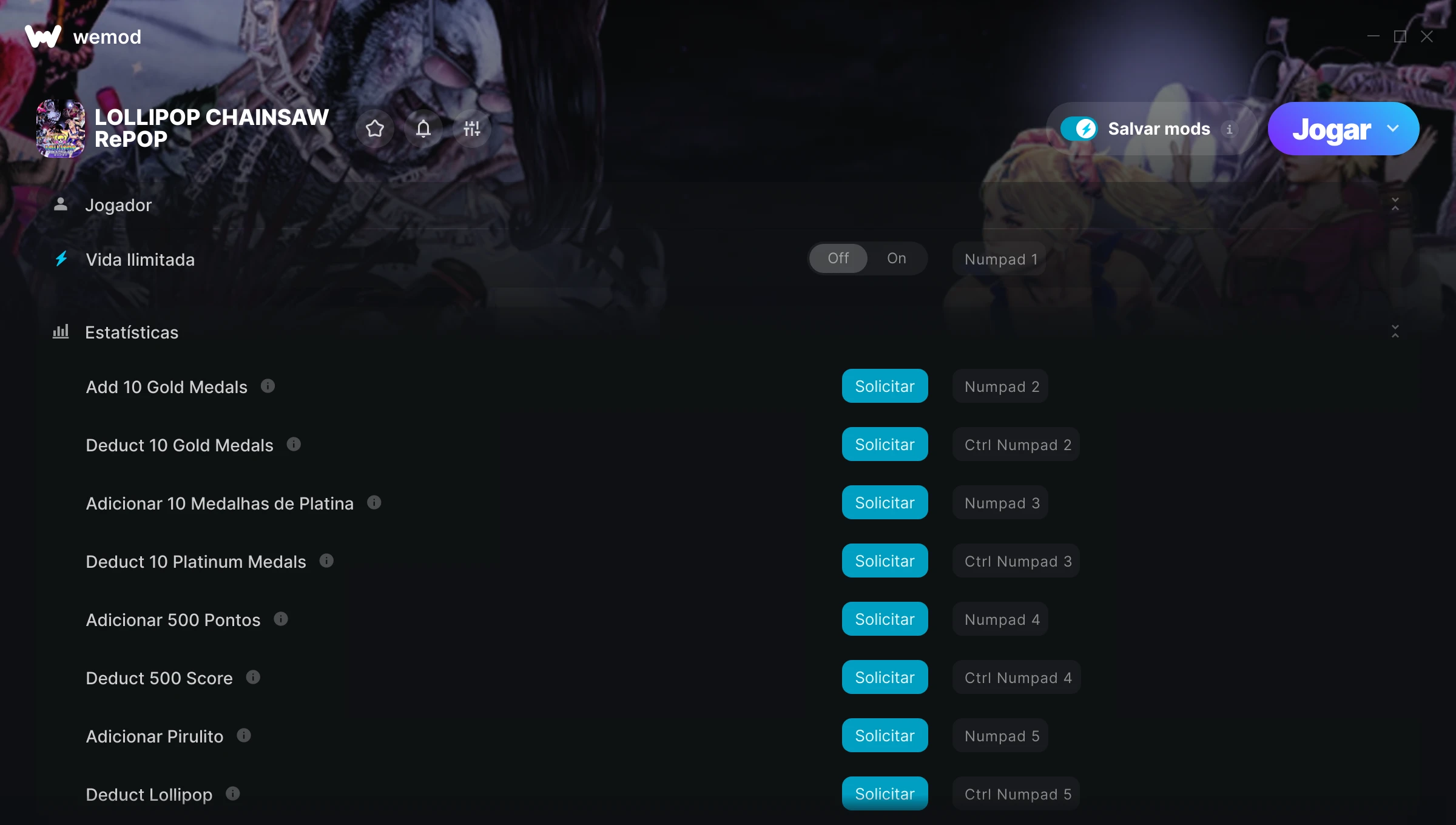 Como uso as trapaças em LOLLIPOP CHAINSAW RePOP?O WeMod exibirá todos os jogos no seu PC com segurança. Abra um jogo da lista e simplesmente pressione Jogar. Depois que o jogo for carregado e você estiver no jogo, você poderá começar a ativar diferentes trapaças!Vai funcionar com a minha versão do jogo?O WeMod usa tecnologia avançada para detectar a versão do jogo que você está rodando e avisar se é suportada. Se não for, você ainda terá a opção de tentar assim mesmo ou solicitar uma atualização!