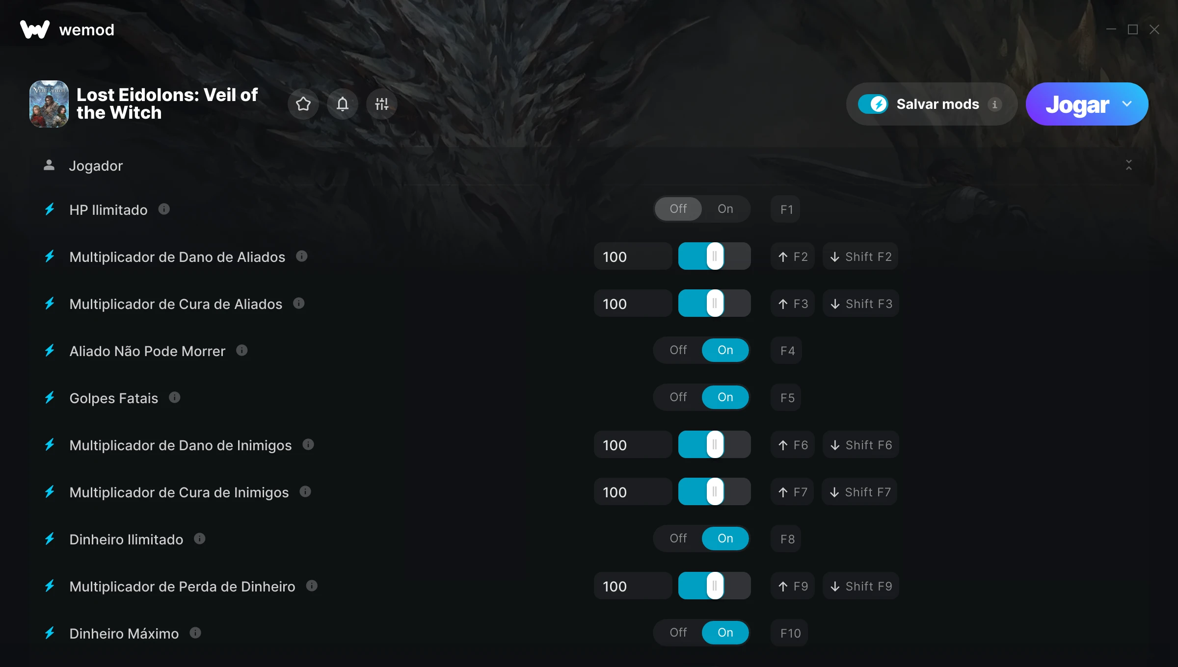 Como uso as trapaças em Lost Eidolons: Veil of the Witch?O WeMod exibirá todos os jogos no seu PC com segurança. Abra um jogo da lista e simplesmente pressione Jogar. Depois que o jogo for carregado e você estiver no jogo, você poderá começar a ativar diferentes trapaças!Vai funcionar com a minha versão do jogo?O WeMod usa tecnologia avançada para detectar a versão do jogo que você está rodando e avisar se é suportada. Se não for, você ainda terá a opção de tentar assim mesmo ou solicitar uma atualização!