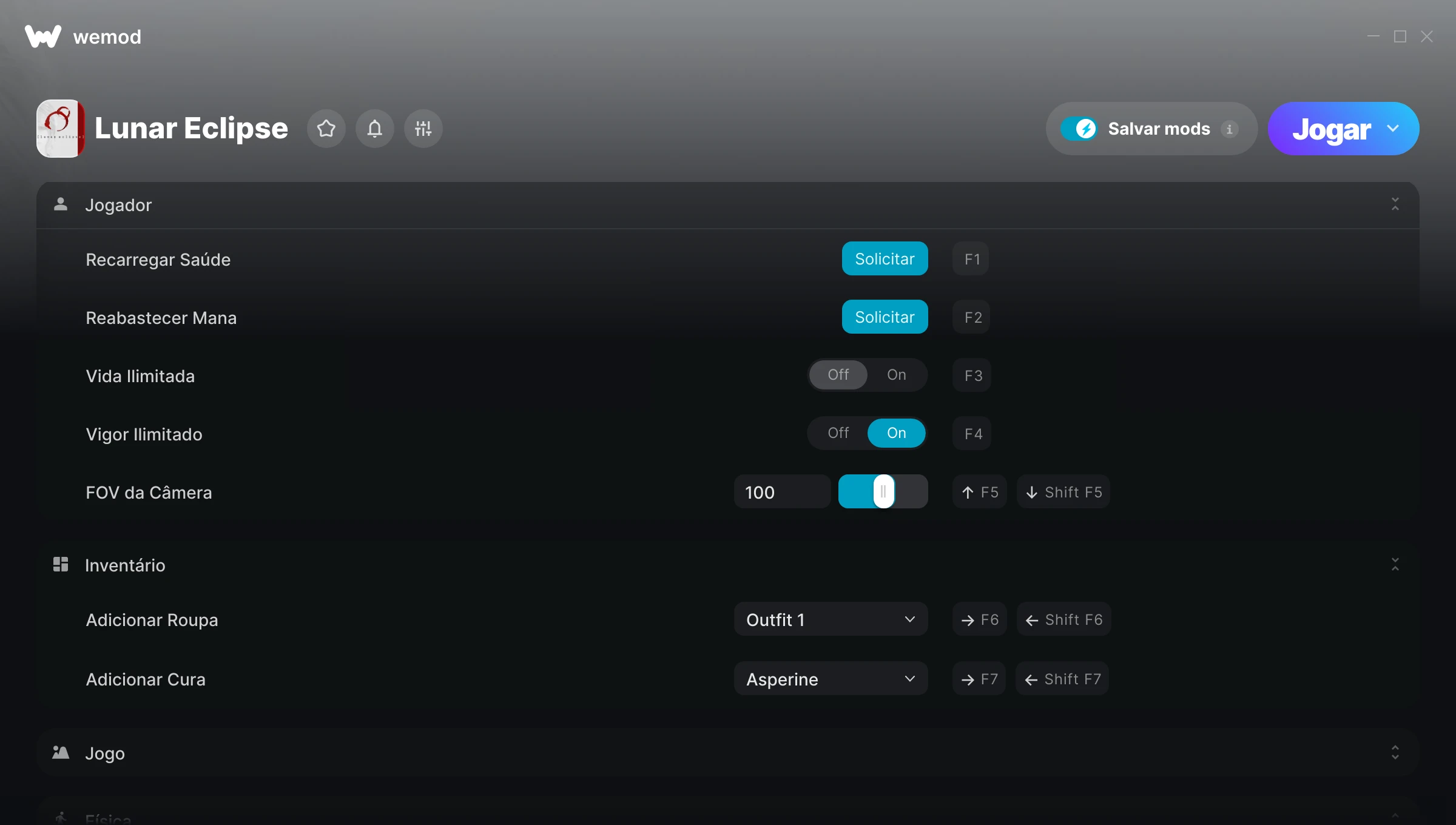 Como uso as trapaças em Lunar Eclipse?O WeMod exibirá todos os jogos no seu PC com segurança. Abra um jogo da lista e simplesmente pressione Jogar. Depois que o jogo for carregado e você estiver no jogo, você poderá começar a ativar diferentes trapaças!Vai funcionar com a minha versão do jogo?O WeMod usa tecnologia avançada para detectar a versão do jogo que você está rodando e avisar se é suportada. Se não for, você ainda terá a opção de tentar assim mesmo ou solicitar uma atualização!