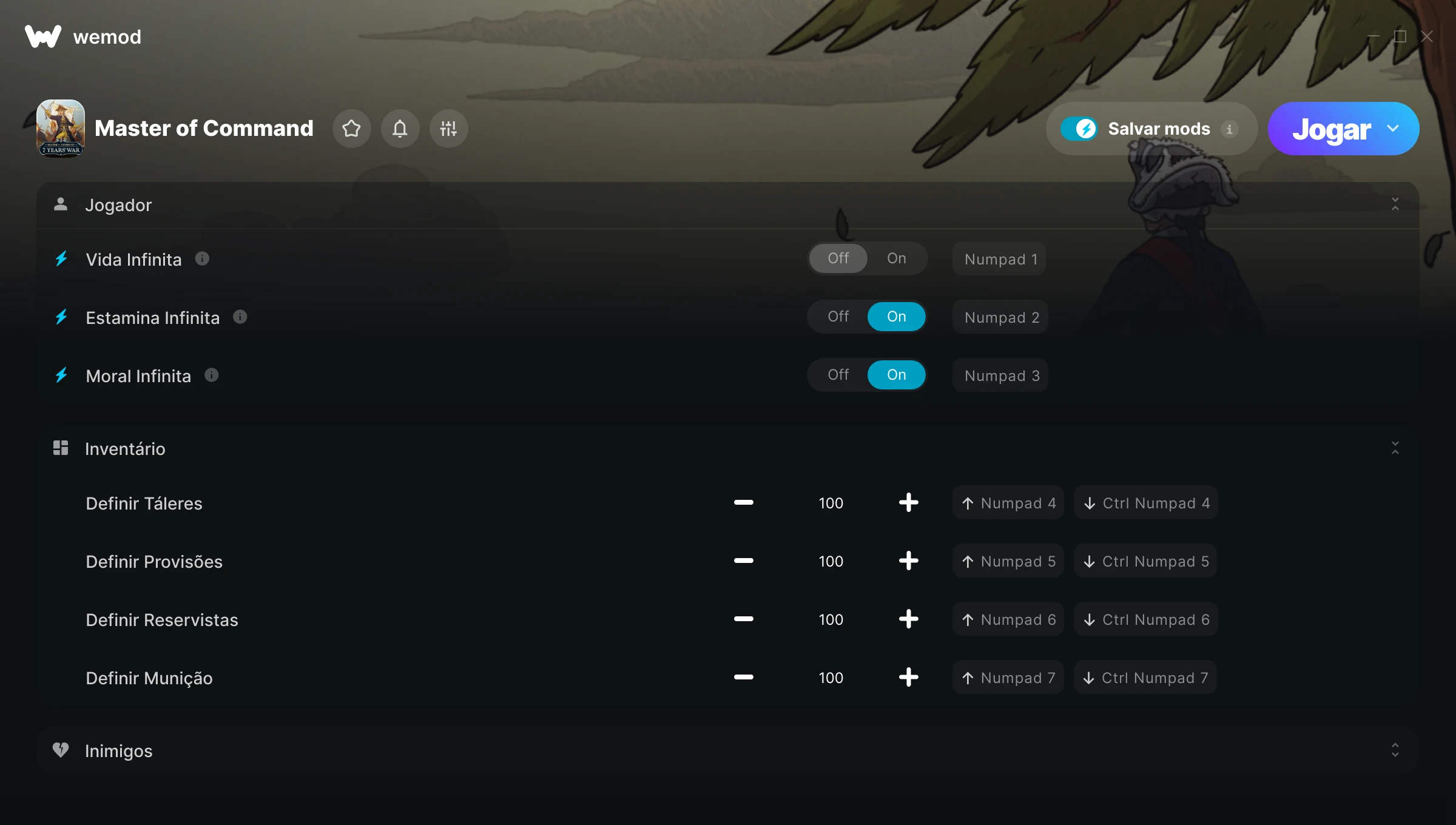 Como uso as trapaças em Master of Command?O WeMod exibirá todos os jogos no seu PC com segurança. Abra um jogo da lista e simplesmente pressione Jogar. Depois que o jogo for carregado e você estiver no jogo, você poderá começar a ativar diferentes trapaças!Vai funcionar com a minha versão do jogo?O WeMod usa tecnologia avançada para detectar a versão do jogo que você está rodando e avisar se é suportada. Se não for, você ainda terá a opção de tentar assim mesmo ou solicitar uma atualização!