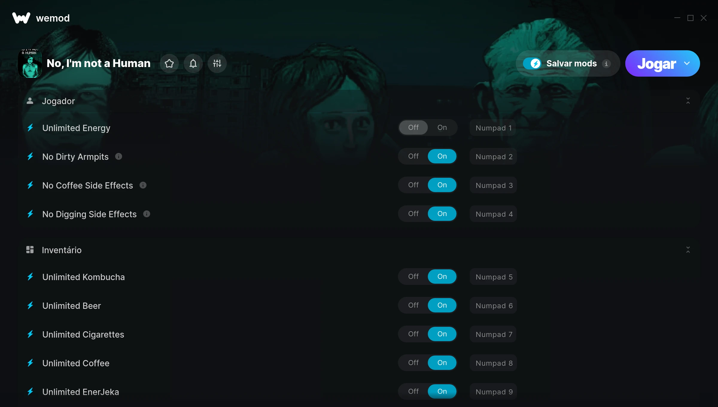 Como uso as trapaças em No, I'm not a Human?O WeMod exibirá todos os jogos no seu PC com segurança. Abra um jogo da lista e simplesmente pressione Jogar. Depois que o jogo for carregado e você estiver no jogo, você poderá começar a ativar diferentes trapaças!Vai funcionar com a minha versão do jogo?O WeMod usa tecnologia avançada para detectar a versão do jogo que você está rodando e avisar se é suportada. Se não for, você ainda terá a opção de tentar assim mesmo ou solicitar uma atualização!