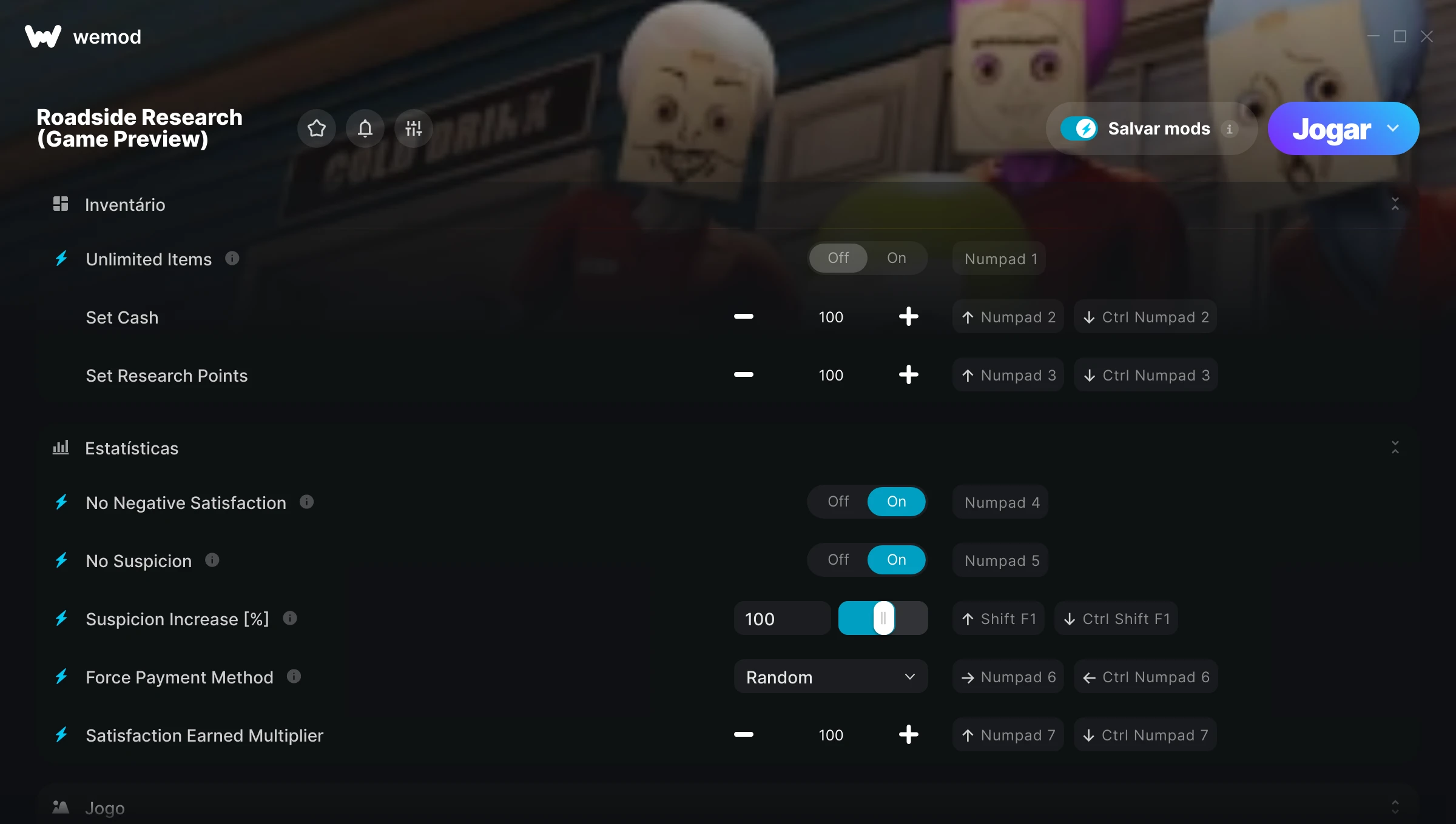 Como uso as trapaças em Roadside Research (Game Preview)?