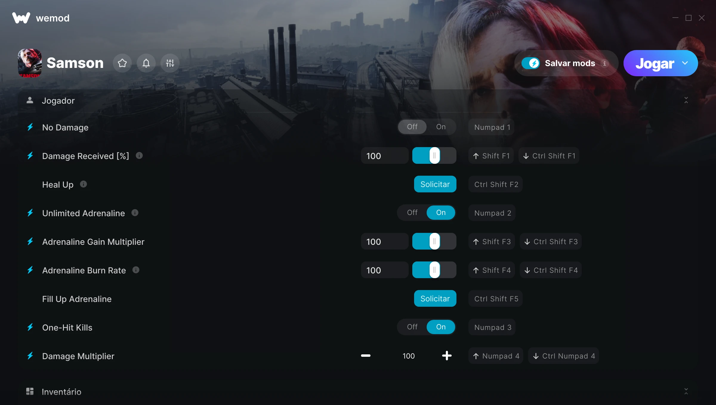 Como uso as trapaças em Samson?O WeMod exibirá todos os jogos no seu PC com segurança. Abra um jogo da lista e simplesmente pressione Jogar. Depois que o jogo for carregado e você estiver no jogo, você poderá começar a ativar diferentes trapaças!Vai funcionar com a minha versão do jogo?O WeMod usa tecnologia avançada para detectar a versão do jogo que você está rodando e avisar se é suportada. Se não for, você ainda terá a opção de tentar assim mesmo ou solicitar uma atualização!