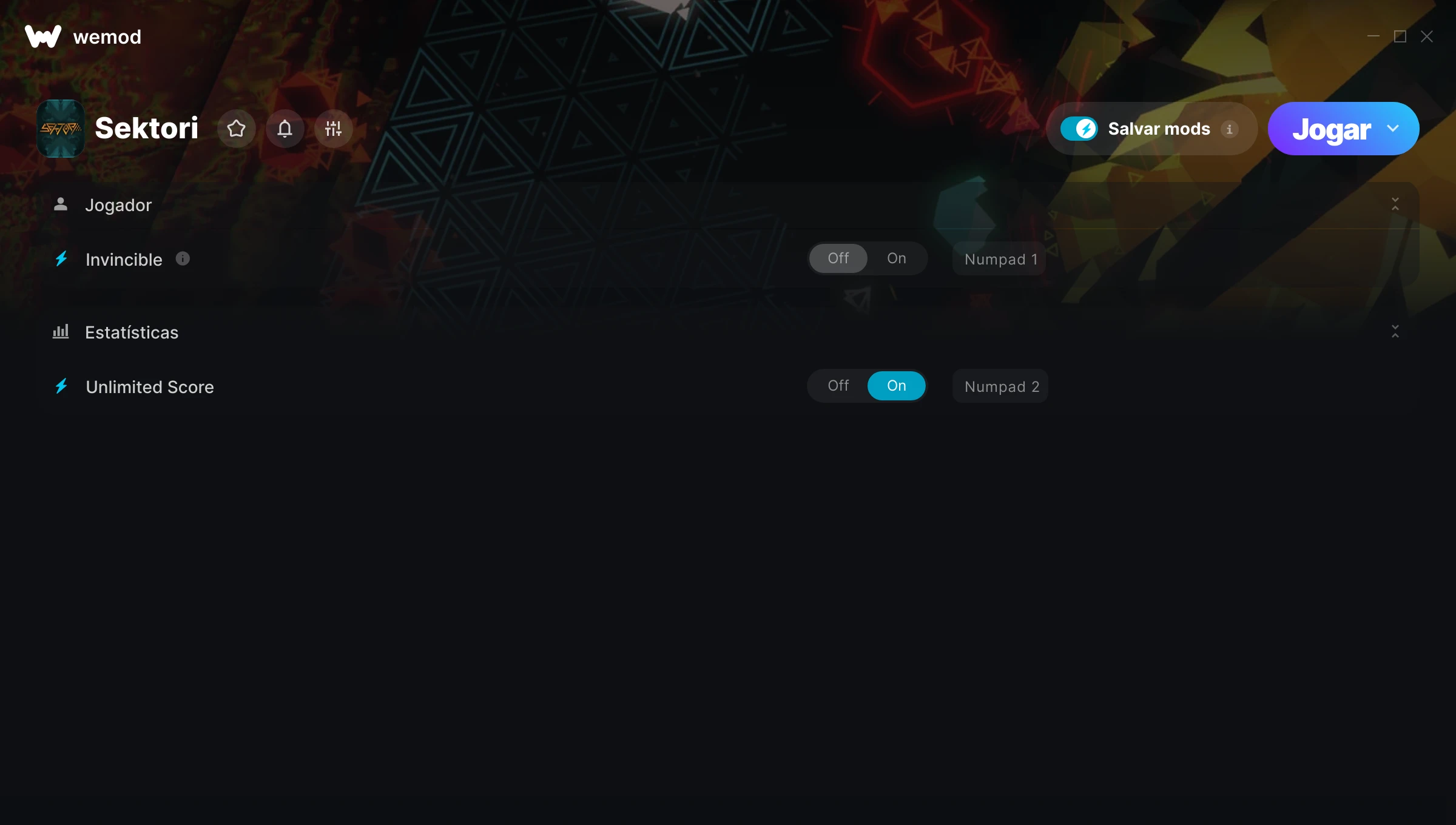 Como uso as trapaças em Sektori?O WeMod exibirá todos os jogos no seu PC com segurança. Abra um jogo da lista e simplesmente pressione Jogar. Depois que o jogo for carregado e você estiver no jogo, você poderá começar a ativar diferentes trapaças!Vai funcionar com a minha versão do jogo?O WeMod usa tecnologia avançada para detectar a versão do jogo que você está rodando e avisar se é suportada. Se não for, você ainda terá a opção de tentar assim mesmo ou solicitar uma atualização!