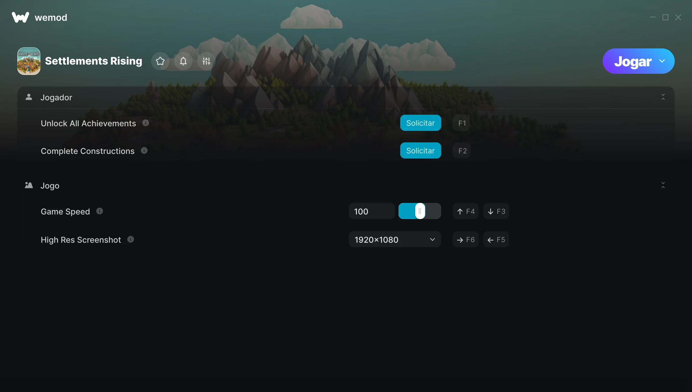Como uso as trapaças em Settlements Rising?O WeMod exibirá todos os jogos no seu PC com segurança. Abra um jogo da lista e simplesmente pressione Jogar. Depois que o jogo for carregado e você estiver no jogo, você poderá começar a ativar diferentes trapaças!Vai funcionar com a minha versão do jogo?O WeMod usa tecnologia avançada para detectar a versão do jogo que você está rodando e avisar se é suportada. Se não for, você ainda terá a opção de tentar assim mesmo ou solicitar uma atualização!