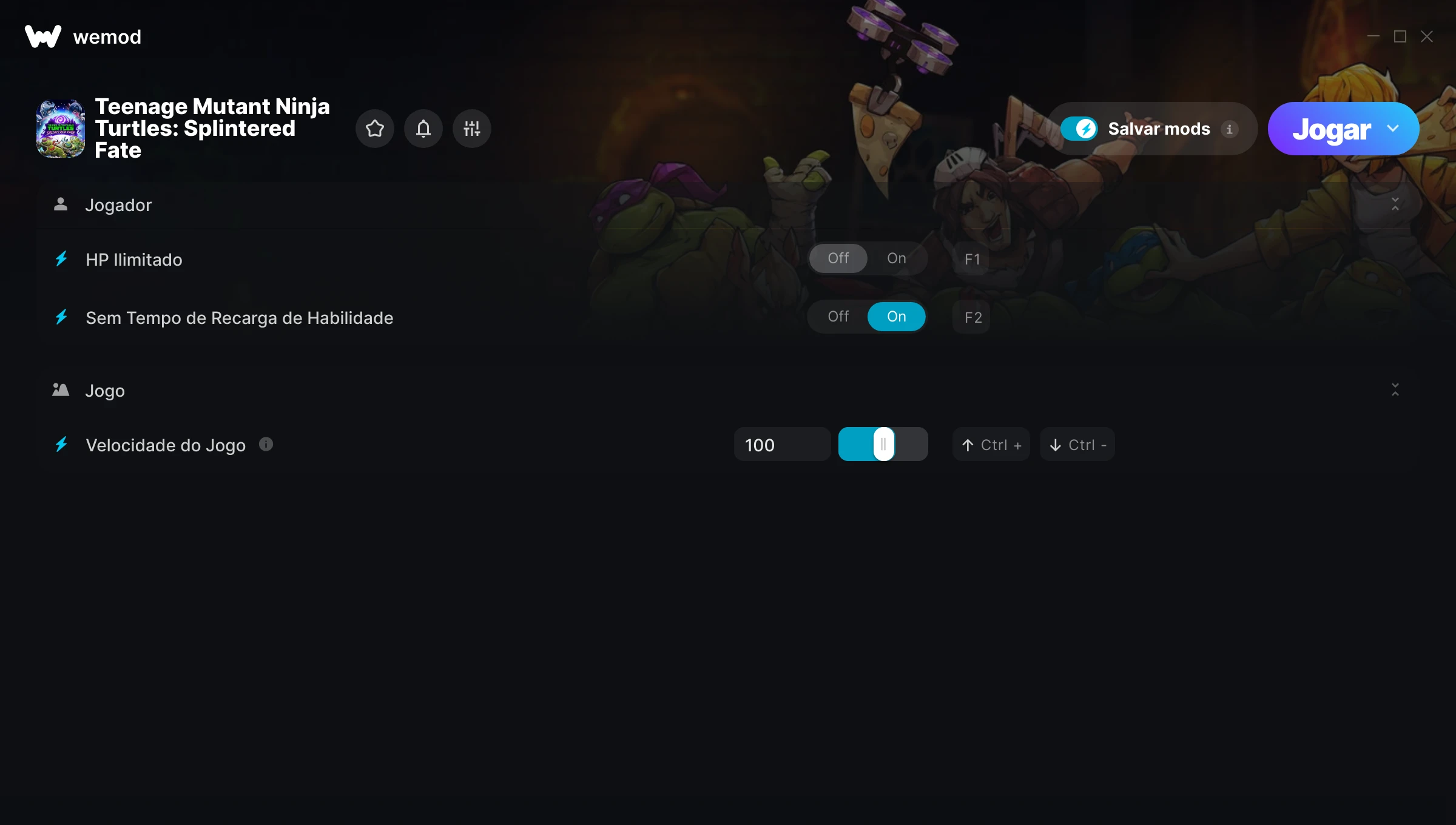 Como uso as trapaças em Teenage Mutant Ninja Turtles: Splintered Fate?O WeMod exibirá todos os jogos no seu PC com segurança. Abra um jogo da lista e simplesmente pressione Jogar. Depois que o jogo for carregado e você estiver no jogo, você poderá começar a ativar diferentes trapaças!Vai funcionar com a minha versão do jogo?O WeMod usa tecnologia avançada para detectar a versão do jogo que você está rodando e avisar se é suportada. Se não for, você ainda terá a opção de tentar assim mesmo ou solicitar uma atualização!