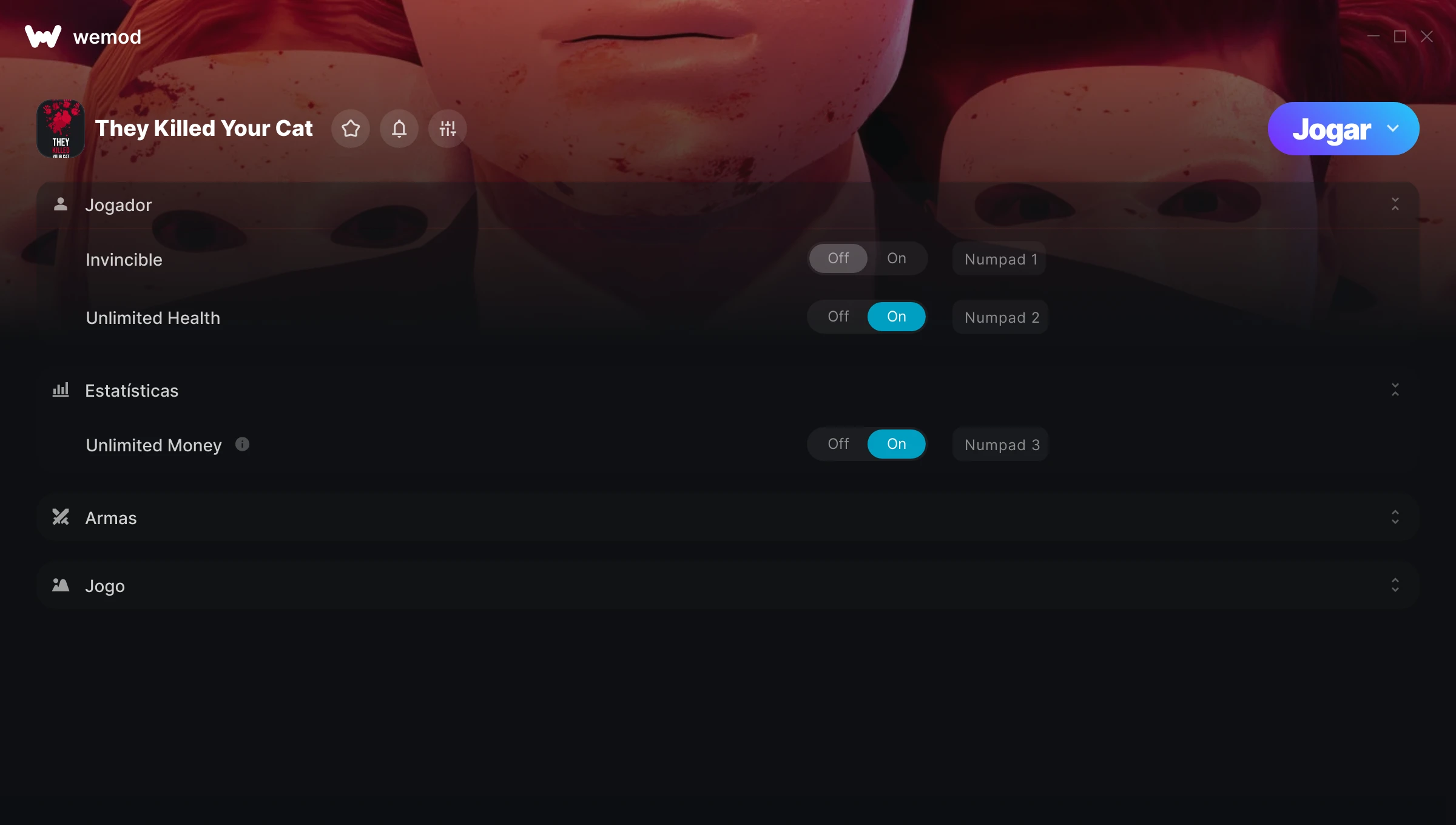 Como uso as trapaças em They Killed Your Cat?O WeMod exibirá todos os jogos no seu PC com segurança. Abra um jogo da lista e simplesmente pressione Jogar. Depois que o jogo for carregado e você estiver no jogo, você poderá começar a ativar diferentes trapaças!Vai funcionar com a minha versão do jogo?O WeMod usa tecnologia avançada para detectar a versão do jogo que você está rodando e avisar se é suportada. Se não for, você ainda terá a opção de tentar assim mesmo ou solicitar uma atualização!