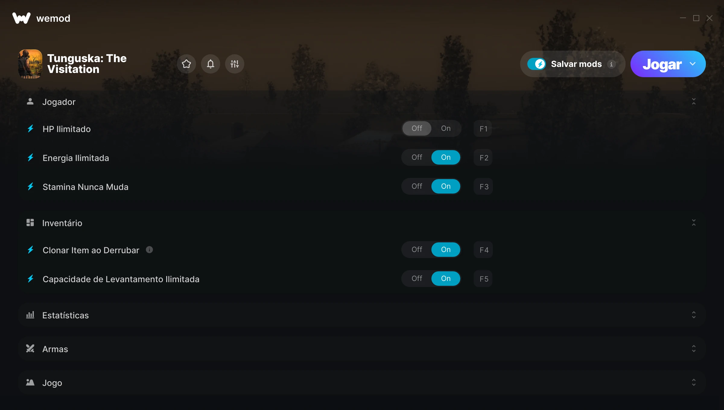 Como uso as trapaças em Tunguska: The Visitation?O WeMod exibirá todos os jogos no seu PC com segurança. Abra um jogo da lista e simplesmente pressione Jogar. Depois que o jogo for carregado e você estiver no jogo, você poderá começar a ativar diferentes trapaças!Vai funcionar com a minha versão do jogo?O WeMod usa tecnologia avançada para detectar a versão do jogo que você está rodando e avisar se é suportada. Se não for, você ainda terá a opção de tentar assim mesmo ou solicitar uma atualização!