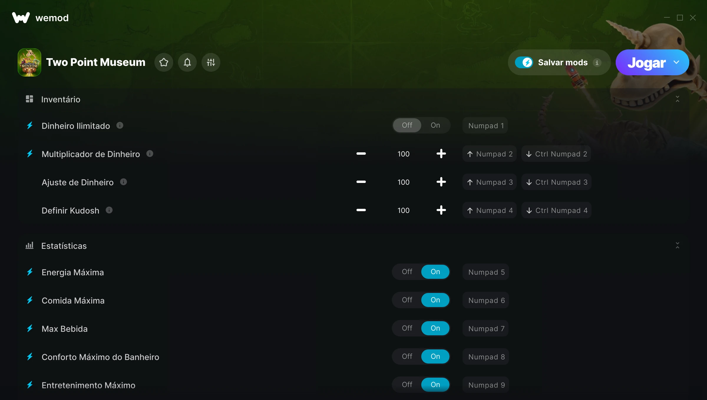 Como uso as trapaças em Two Point Museum?