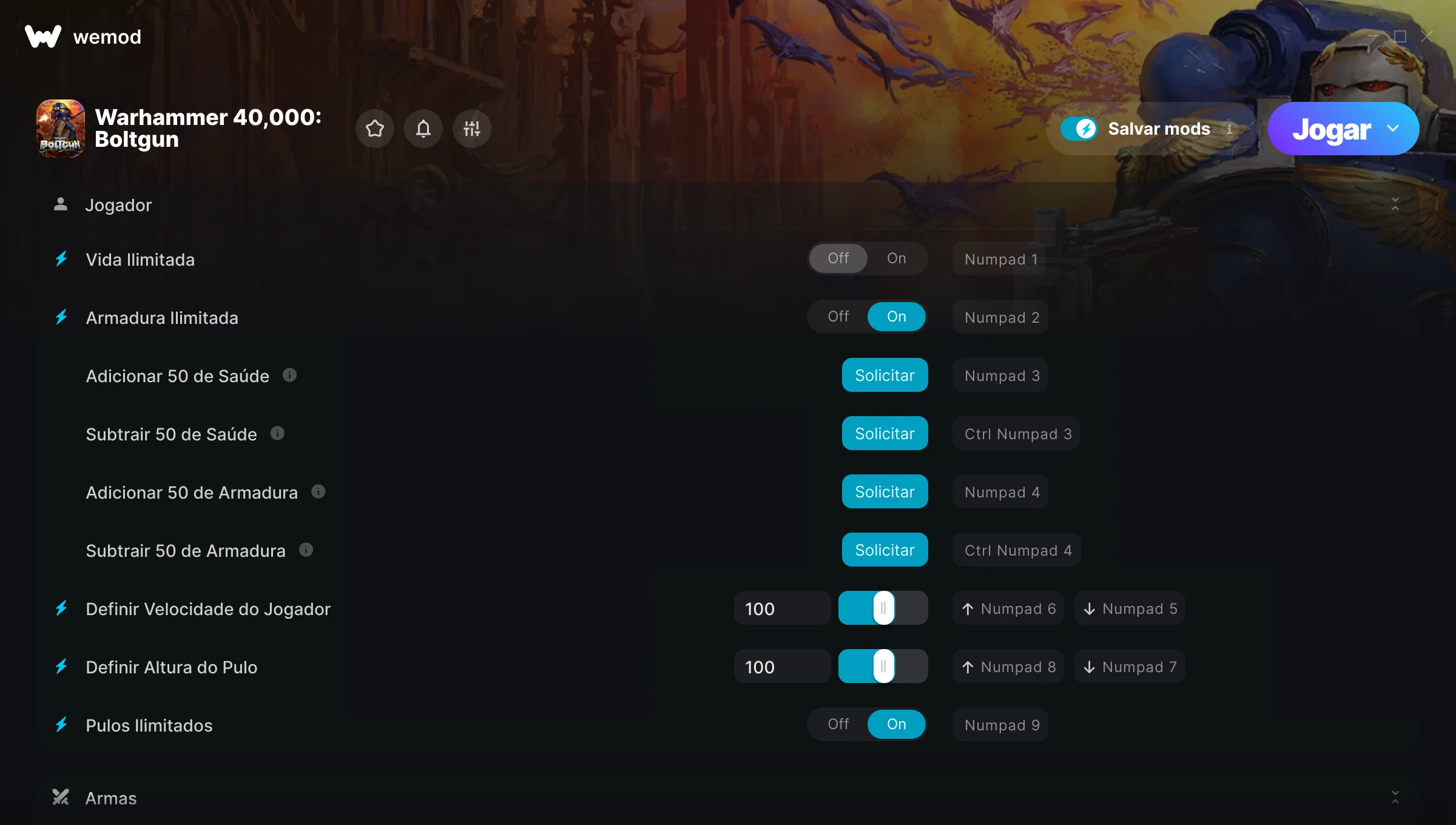 85MB Windows ...ou visite nossa página usando seu PC para baixar o aplicativo Obtenha Vida Ilimitada, Armadura Ilimitada & 11 outros mods for Warhammer 40,000: Boltgun with WeMod