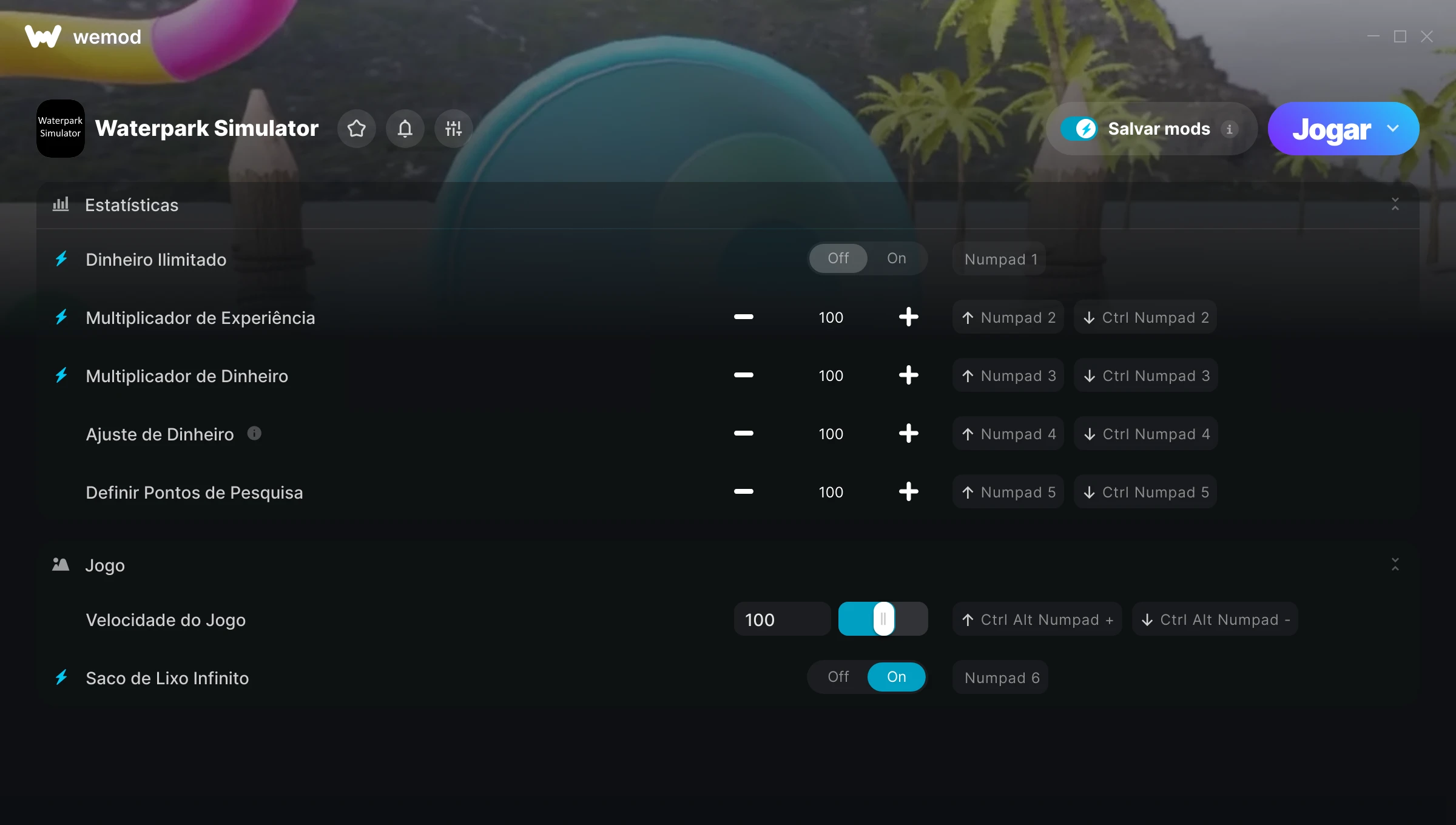 Como uso as trapaças em Waterpark Simulator?