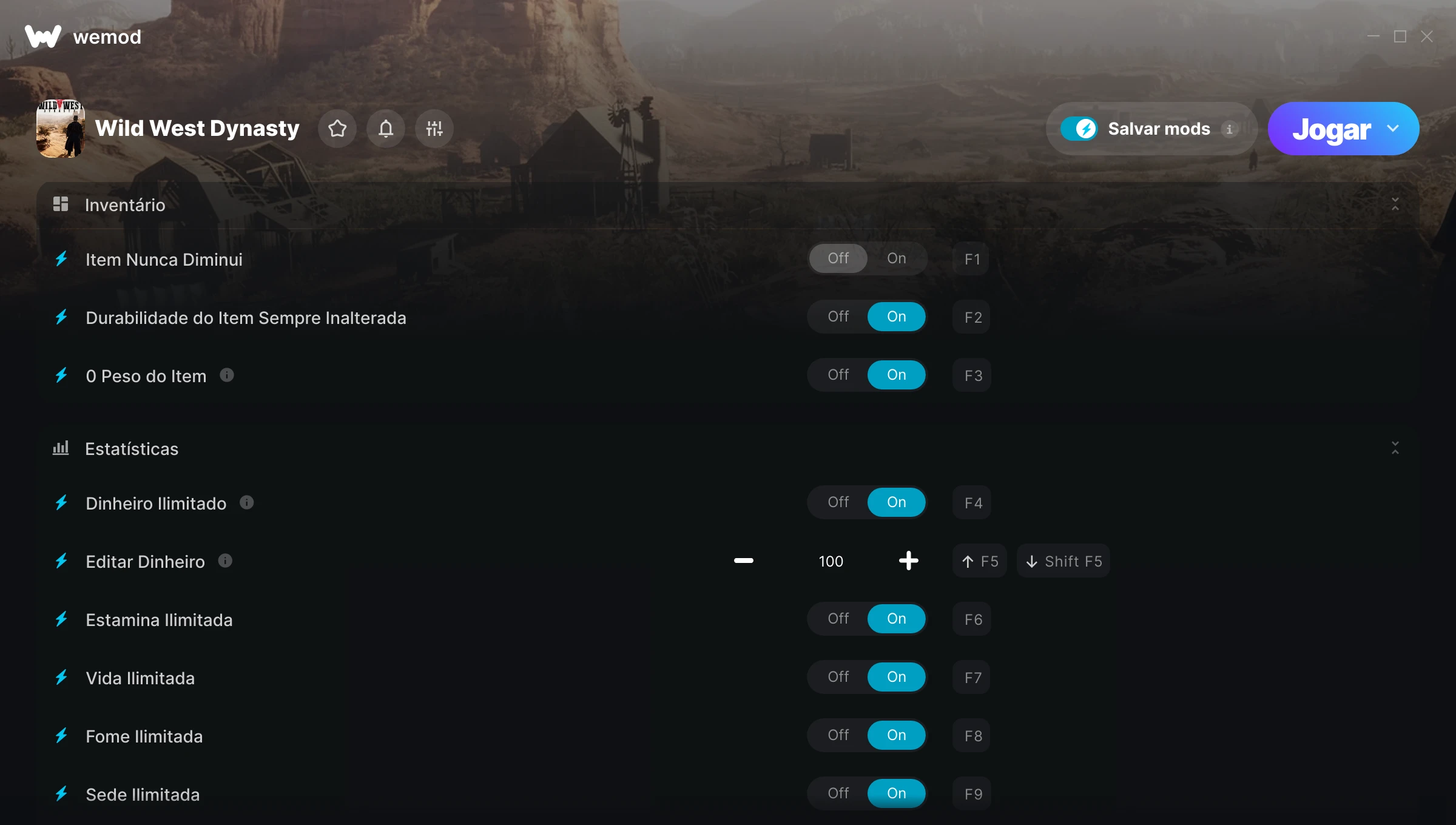 Como uso as trapaças em Wild West Dynasty?O WeMod exibirá todos os jogos no seu PC com segurança. Abra um jogo da lista e simplesmente pressione Jogar. Depois que o jogo for carregado e você estiver no jogo, você poderá começar a ativar diferentes trapaças!Vai funcionar com a minha versão do jogo?O WeMod usa tecnologia avançada para detectar a versão do jogo que você está rodando e avisar se é suportada. Se não for, você ainda terá a opção de tentar assim mesmo ou solicitar uma atualização!