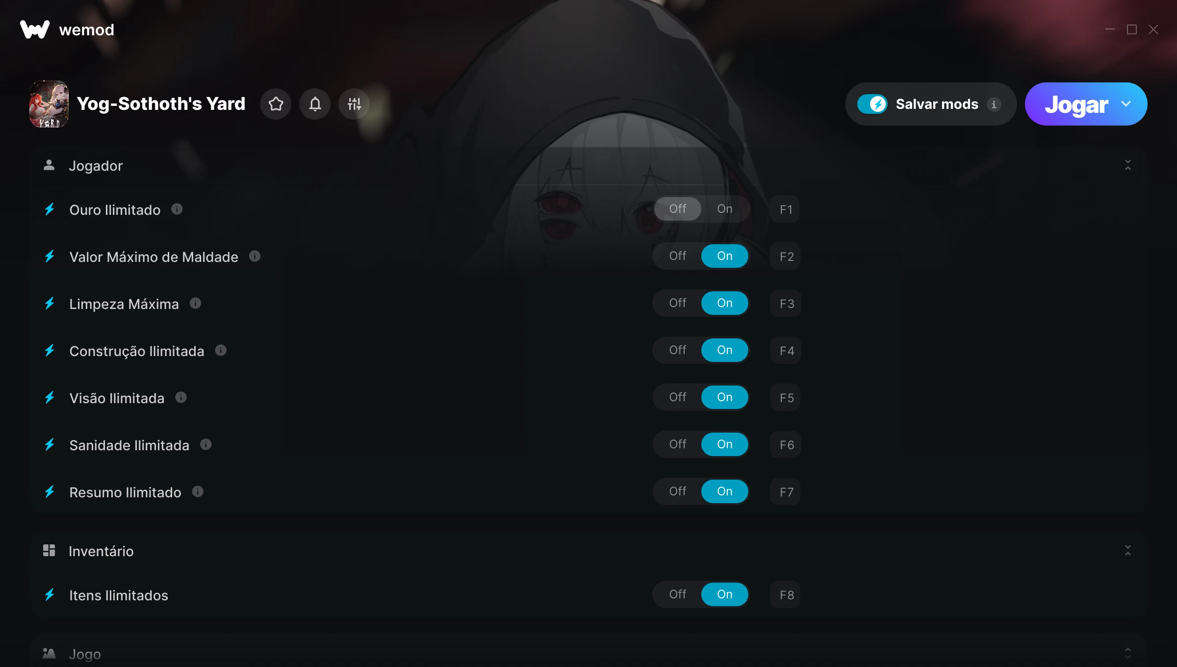 Como uso as trapaças em Yog-Sothoth's Yard?O WeMod exibirá todos os jogos no seu PC com segurança. Abra um jogo da lista e simplesmente pressione Jogar. Depois que o jogo for carregado e você estiver no jogo, você poderá começar a ativar diferentes trapaças!Vai funcionar com a minha versão do jogo?O WeMod usa tecnologia avançada para detectar a versão do jogo que você está rodando e avisar se é suportada. Se não for, você ainda terá a opção de tentar assim mesmo ou solicitar uma atualização!
