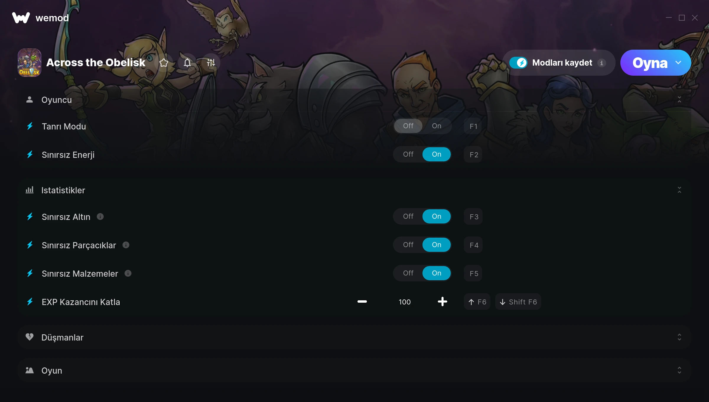 Hileleri Across the Obelisk oyununda nasıl kullanırım?